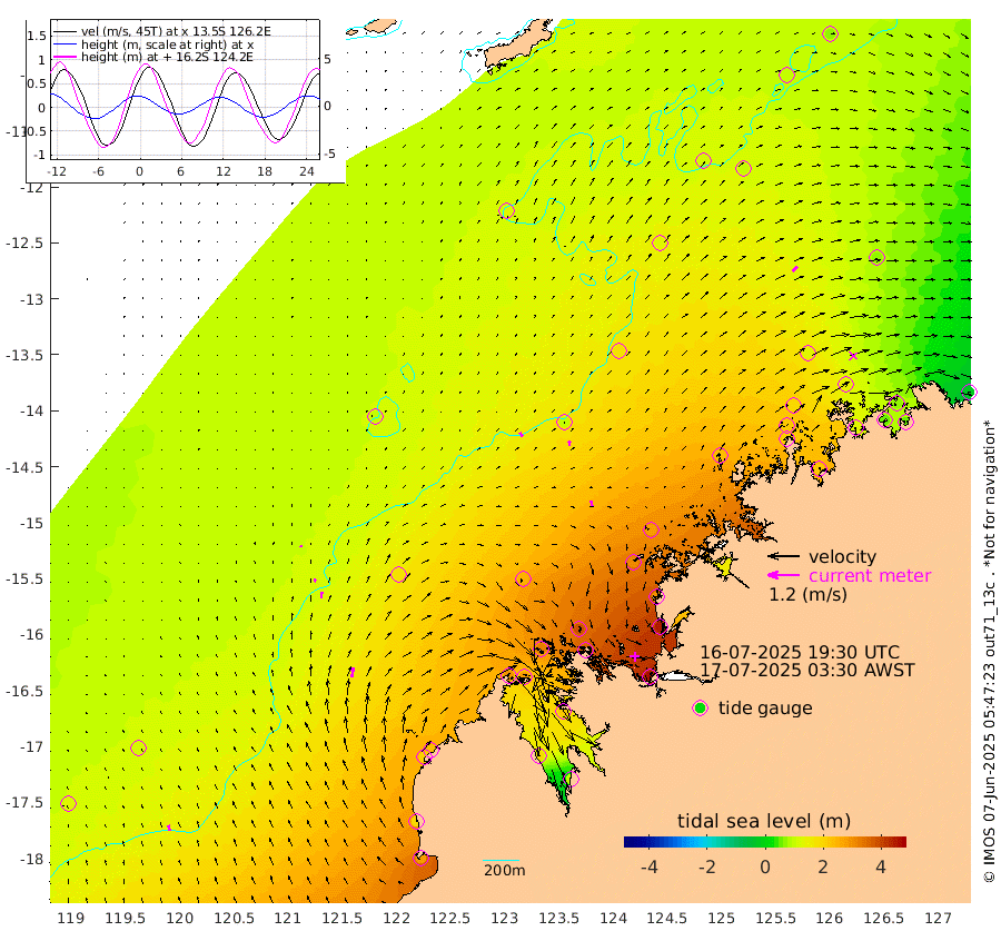 19cm/s -35T +10cm/s rms + 1cm/s 1T. NWSBRW 205m 22cm/s -17T +11cm/s rms + 6cm/s -110T. NWSROW 199m 19cm/s -11T +5cm/s rms + 2cm/s 65T. CAM050 58m 18cm/s -2T +12cm/s rms + 5cm/s 92T. CAM100 99m 6cm/s 17T +7cm/s rms + 1cm/s -85T. KIM400 396m 12cm/s 8T +9cm/s rms + 5cm/s -119T. KIM200 208m 23cm/s 4T +11cm/s rms + 5cm/s -147T. KIM100 99m 37cm/s 5T +8cm/s rms + 3cm/s -103T. KIM050 59m 23cm/s 43T +4cm/s rms + 2cm/s 23T. TIMORS88 91m 133cm Imperieuse Reef 109cm Mermaid Reef 280cm Broome 199cm Cape Baskerville 234cm Red Bluff 182cm Cape Boileau 98cm Scott Reef (WA) 130cm Ashmore Reef 298cm Karrakatta Bay 272cm Sunday Island 186cm Valentine Island 105cm Derby 214cm Port Usborne 323cm Bedford Islands 372cm Yampi Sound (Koolan Island) 387cm Macleay Island 247cm Adele Island 95cm Browse Island 461cm Shale Island 437cm Lizard Island 292cm Hall Point 310cm Degerando Island 280cm White Island 133cm Skua No. 4 Well 100cm Jabiru 229cm Maret Island 210cm Baudin Island 205cm Cape Voltaire (Krait Bay) 94cm Dillon Shoal 74cm Laminaria 220cm Port Warrender 144cm Troughton Island 194cm Cassini Island 135cm West Holothuria Reef Offshore 134cm Jar Island 167cm Lynher Bank 165cm Heywood Shoal 114cm Pee Shoal 72cm Van Cloon Shoal 63cm Carronade Island 60cm Guy Point 57cm Napier Broome Bay -18cm Lesueur Island