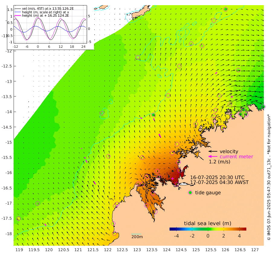 27cm/s -46T +10cm/s rms + 1cm/s 1T. NWSBRW 205m 36cm/s -31T +11cm/s rms + 6cm/s -110T. NWSROW 199m 58cm/s -27T +5cm/s rms + 2cm/s 65T. CAM050 58m 44cm/s -24T +12cm/s rms + 5cm/s 92T. CAM100 99m 9cm/s -25T +7cm/s rms + 1cm/s -85T. KIM400 396m 20cm/s -33T +9cm/s rms + 5cm/s -119T. KIM200 208m 40cm/s -28T +11cm/s rms + 5cm/s -147T. KIM100 99m 46cm/s -33T +8cm/s rms + 3cm/s -103T. KIM050 59m 29cm/s 44T +4cm/s rms + 2cm/s 23T. TIMORS88 91m 131cm Imperieuse Reef 53cm Mermaid Reef 160cm Broome 108cm Cape Baskerville 160cm Red Bluff 95cm Cape Boileau 48cm Scott Reef (WA) 89cm Ashmore Reef 277cm Karrakatta Bay 271cm Sunday Island 332cm Valentine Island 298cm Derby 329cm Port Usborne 266cm Bedford Islands 302cm Yampi Sound (Koolan Island) 313cm Macleay Island 178cm Adele Island 10cm Browse Island 403cm Shale Island 381cm Lizard Island 206cm Hall Point 223cm Degerando Island 187cm White Island 85cm Skua No. 4 Well 70cm Jabiru 138cm Maret Island 127cm Baudin Island 120cm Cape Voltaire (Krait Bay) 77cm Dillon Shoal 40cm Laminaria 138cm Port Warrender 99cm Troughton Island 117cm Cassini Island 81cm West Holothuria Reef Offshore 88cm Jar Island 103cm Lynher Bank 87cm Heywood Shoal 84cm Pee Shoal 53cm Van Cloon Shoal 26cm Carronade Island 20cm Guy Point 21cm Napier Broome Bay -21cm Lesueur Island