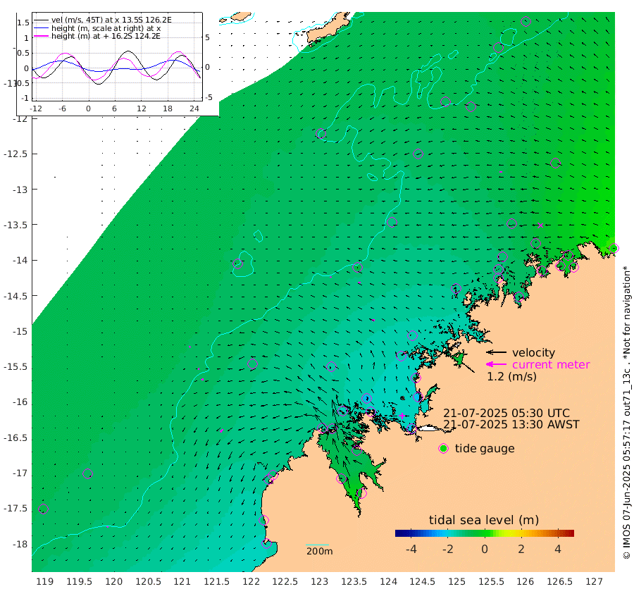 6cm/s -140T +10cm/s rms + 1cm/s 1T. NWSBRW 205m 6cm/s -150T +11cm/s rms + 6cm/s -110T. NWSROW 199m 15cm/s -87T +5cm/s rms + 2cm/s 65T. CAM050 58m 14cm/s -98T +12cm/s rms + 5cm/s 92T. CAM100 99m 6cm/s -109T +7cm/s rms + 1cm/s -85T. KIM400 396m 8cm/s -102T +9cm/s rms + 5cm/s -119T. KIM200 208m 13cm/s -108T +11cm/s rms + 5cm/s -147T. KIM100 99m 22cm/s -135T +8cm/s rms + 3cm/s -103T. KIM050 59m 14cm/s -88T +4cm/s rms + 2cm/s 23T. TIMORS88 91m -71cm Imperieuse Reef -91cm Mermaid Reef -162cm Broome -122cm Cape Baskerville -116cm Red Bluff -113cm Cape Boileau -89cm Scott Reef (WA) -95cm Ashmore Reef -146cm Karrakatta Bay -148cm Sunday Island -78cm Valentine Island -46cm Derby -101cm Port Usborne -172cm Bedford Islands -187cm Yampi Sound (Koolan Island) -227cm Macleay Island -153cm Adele Island -72cm Browse Island -212cm Shale Island -213cm Lizard Island -130cm Hall Point -157cm Degerando Island -151cm White Island -108cm Skua No. 4 Well -102cm Jabiru -138cm Maret Island -118cm Baudin Island -121cm Cape Voltaire (Krait Bay) -84cm Dillon Shoal -99cm Laminaria -113cm Port Warrender -86cm Troughton Island -115cm Cassini Island -91cm West Holothuria Reef Offshore -69cm Jar Island -114cm Lynher Bank -127cm Heywood Shoal -95cm Pee Shoal -51cm Van Cloon Shoal -40cm Carronade Island -50cm Guy Point -38cm Napier Broome Bay 15cm Lesueur Island