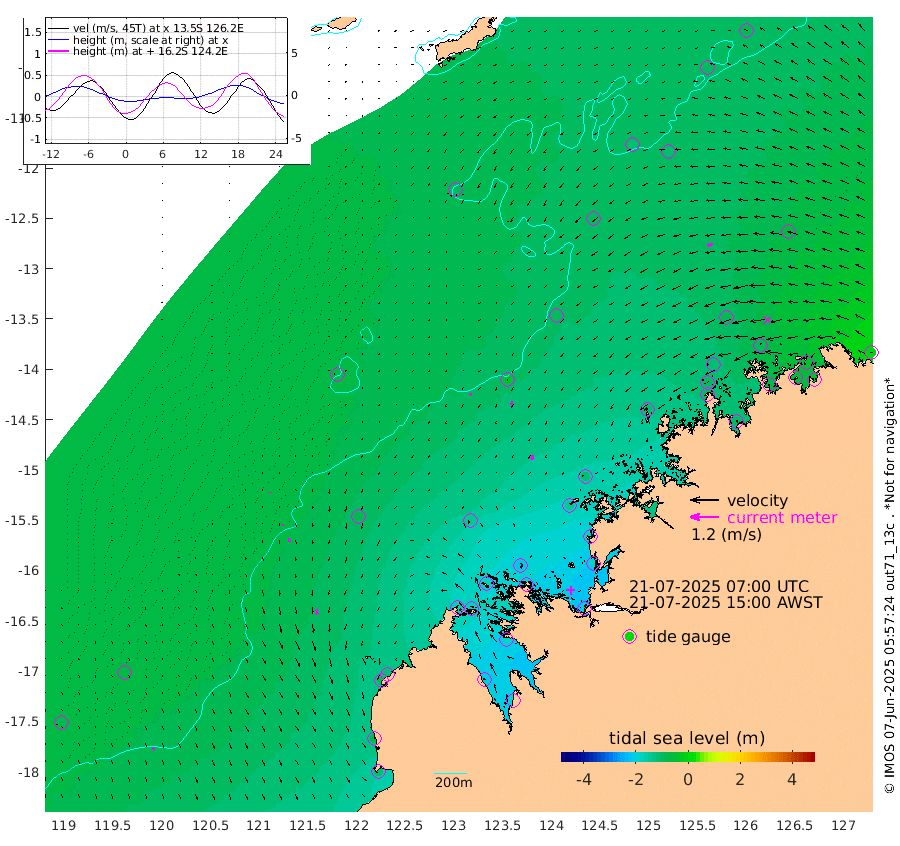 10cm/s 160T +10cm/s rms + 1cm/s 1T. NWSBRW 205m 13cm/s 155T +11cm/s rms + 6cm/s -110T. NWSROW 199m 20cm/s -179T +5cm/s rms + 2cm/s 65T. CAM050 58m 17cm/s -171T +12cm/s rms + 5cm/s 92T. CAM100 99m 4cm/s -166T +7cm/s rms + 1cm/s -85T. KIM400 396m 7cm/s 175T +9cm/s rms + 5cm/s -119T. KIM200 208m 15cm/s 176T +11cm/s rms + 5cm/s -147T. KIM100 99m 20cm/s 172T +8cm/s rms + 3cm/s -103T. KIM050 59m 22cm/s -107T +4cm/s rms + 2cm/s 23T. TIMORS88 91m -90cm Imperieuse Reef -68cm Mermaid Reef -113cm Broome -92cm Cape Baskerville -105cm Red Bluff -85cm Cape Boileau -70cm Scott Reef (WA) -93cm Ashmore Reef -167cm Karrakatta Bay -171cm Sunday Island -199cm Valentine Island -188cm Derby -194cm Port Usborne -168cm Bedford Islands -171cm Yampi Sound (Koolan Island) -216cm Macleay Island -139cm Adele Island -33cm Browse Island -209cm Shale Island -193cm Lizard Island -170cm Hall Point -137cm Degerando Island -112cm White Island -102cm Skua No. 4 Well -120cm Jabiru -115cm Maret Island -96cm Baudin Island -98cm Cape Voltaire (Krait Bay) -99cm Dillon Shoal -87cm Laminaria -98cm Port Warrender -97cm Troughton Island -105cm Cassini Island -85cm West Holothuria Reef Offshore -69cm Jar Island -88cm Lynher Bank -102cm Heywood Shoal -105cm Pee Shoal -68cm Van Cloon Shoal -44cm Carronade Island -51cm Guy Point -44cm Napier Broome Bay -12cm Lesueur Island