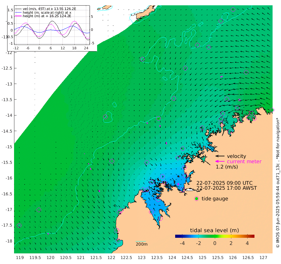 17cm/s 146T +10cm/s rms + 1cm/s 1T. NWSBRW 205m 19cm/s 151T +11cm/s rms + 6cm/s -110T. NWSROW 199m 32cm/s 167T +5cm/s rms + 2cm/s 65T. CAM050 58m 24cm/s 171T +12cm/s rms + 5cm/s 92T. CAM100 99m 5cm/s 161T +7cm/s rms + 1cm/s -85T. KIM400 396m 12cm/s 150T +9cm/s rms + 5cm/s -119T. KIM200 208m 23cm/s 158T +11cm/s rms + 5cm/s -147T. KIM100 99m 26cm/s 154T +8cm/s rms + 3cm/s -103T. KIM050 59m 30cm/s -118T +4cm/s rms + 2cm/s 23T. TIMORS88 91m -108cm Imperieuse Reef -63cm Mermaid Reef -113cm Broome -96cm Cape Baskerville -130cm Red Bluff -96cm Cape Boileau -66cm Scott Reef (WA) -101cm Ashmore Reef -191cm Karrakatta Bay -193cm Sunday Island -234cm Valentine Island -226cm Derby -223cm Port Usborne -183cm Bedford Islands -186cm Yampi Sound (Koolan Island) -213cm Macleay Island -143cm Adele Island -21cm Browse Island -234cm Shale Island -206cm Lizard Island -222cm Hall Point -156cm Degerando Island -117cm White Island -104cm Skua No. 4 Well -126cm Jabiru -123cm Maret Island -106cm Baudin Island -110cm Cape Voltaire (Krait Bay) -113cm Dillon Shoal -78cm Laminaria -122cm Port Warrender -118cm Troughton Island -122cm Cassini Island -98cm West Holothuria Reef Offshore -92cm Jar Island -87cm Lynher Bank -107cm Heywood Shoal -116cm Pee Shoal -93cm Van Cloon Shoal -69cm Carronade Island -73cm Guy Point -76cm Napier Broome Bay -49cm Lesueur Island