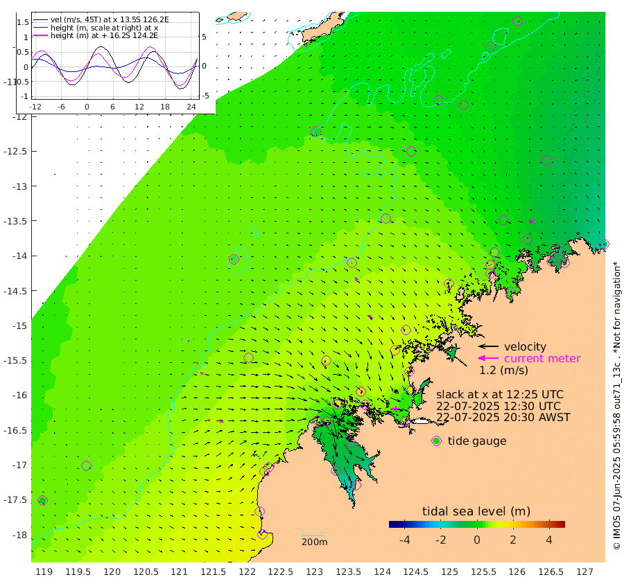 6cm/s 86T +10cm/s rms + 1cm/s 1T. NWSBRW 205m 9cm/s 116T +11cm/s rms + 6cm/s -110T. NWSROW 199m 29cm/s 140T +5cm/s rms + 2cm/s 65T. CAM050 58m 20cm/s 133T +12cm/s rms + 5cm/s 92T. CAM100 99m 7cm/s 100T +7cm/s rms + 1cm/s -85T. KIM400 396m 12cm/s 107T +9cm/s rms + 5cm/s -119T. KIM200 208m 19cm/s 109T +11cm/s rms + 5cm/s -147T. KIM100 99m 23cm/s 82T +8cm/s rms + 3cm/s -103T. KIM050 59m 8cm/s -174T +4cm/s rms + 2cm/s 23T. TIMORS88 91m -1cm Imperieuse Reef 46cm Mermaid Reef 129cm Broome 87cm Cape Baskerville 83cm Red Bluff 76cm Cape Boileau 43cm Scott Reef (WA) 27cm Ashmore Reef 69cm Karrakatta Bay 54cm Sunday Island -61cm Valentine Island -111cm Derby -32cm Port Usborne 105cm Bedford Islands 110cm Yampi Sound (Koolan Island) 165cm Macleay Island 98cm Adele Island 72cm Browse Island 116cm Shale Island 116cm Lizard Island 117cm Hall Point 98cm Degerando Island 98cm White Island 41cm Skua No. 4 Well 27cm Jabiru 85cm Maret Island 64cm Baudin Island 55cm Cape Voltaire (Krait Bay) -4cm Dillon Shoal 24cm Laminaria 39cm Port Warrender -12cm Troughton Island 46cm Cassini Island 18cm West Holothuria Reef Offshore -15cm Jar Island 62cm Lynher Bank 56cm Heywood Shoal 13cm Pee Shoal -37cm Van Cloon Shoal -49cm Carronade Island -46cm Guy Point -54cm Napier Broome Bay -134cm Lesueur Island