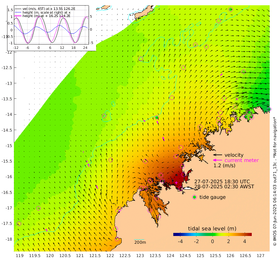 27cm/s -45T +10cm/s rms + 1cm/s 1T. NWSBRW 205m 37cm/s -29T +11cm/s rms + 6cm/s -110T. NWSROW 199m 53cm/s -22T +5cm/s rms + 2cm/s 65T. CAM050 58m 43cm/s -20T +12cm/s rms + 5cm/s 92T. CAM100 99m 9cm/s -20T +7cm/s rms + 1cm/s -85T. KIM400 396m 20cm/s -25T +9cm/s rms + 5cm/s -119T. KIM200 208m 40cm/s -22T +11cm/s rms + 5cm/s -147T. KIM100 99m 47cm/s -23T +8cm/s rms + 3cm/s -103T. KIM050 59m 37cm/s 51T +4cm/s rms + 2cm/s 23T. TIMORS88 91m 142cm Imperieuse Reef 71cm Mermaid Reef 221cm Broome 152cm Cape Baskerville 221cm Red Bluff 142cm Cape Boileau 66cm Scott Reef (WA) 99cm Ashmore Reef 312cm Karrakatta Bay 315cm Sunday Island 329cm Valentine Island 266cm Derby 328cm Port Usborne 337cm Bedford Islands 366cm Yampi Sound (Koolan Island) 373cm Macleay Island 223cm Adele Island 25cm Browse Island 471cm Shale Island 463cm Lizard Island 287cm Hall Point 290cm Degerando Island 239cm White Island 98cm Skua No. 4 Well 81cm Jabiru 180cm Maret Island 150cm Baudin Island 156cm Cape Voltaire (Krait Bay) 77cm Dillon Shoal 43cm Laminaria 187cm Port Warrender 99cm Troughton Island 140cm Cassini Island 91cm West Holothuria Reef Offshore 89cm Jar Island 139cm Lynher Bank 124cm Heywood Shoal 94cm Pee Shoal 48cm Van Cloon Shoal 20cm Carronade Island 16cm Guy Point 15cm Napier Broome Bay -65cm Lesueur Island