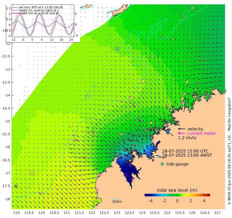 31cm/s 123T +10cm/s rms + 1cm/s 1T. NWSBRW 205m 45cm/s 138T +11cm/s rms + 6cm/s -110T. NWSROW 199m 103cm/s 143T +5cm/s rms + 2cm/s 65T. CAM050 58m 73cm/s 141T +12cm/s rms + 5cm/s 92T. CAM100 99m 15cm/s 119T +7cm/s rms + 1cm/s -85T. KIM400 396m 35cm/s 120T +9cm/s rms + 5cm/s -119T. KIM200 208m 63cm/s 126T +11cm/s rms + 5cm/s -147T. KIM100 99m 68cm/s 109T +8cm/s rms + 3cm/s -103T. KIM050 59m 25cm/s -143T +4cm/s rms + 2cm/s 23T. TIMORS88 91m -64cm Imperieuse Reef 82cm Mermaid Reef 155cm Broome 120cm Cape Baskerville 68cm Red Bluff 101cm Cape Boileau 70cm Scott Reef (WA) 42cm Ashmore Reef -82cm Karrakatta Bay -126cm Sunday Island -417cm Valentine Island -485cm Derby -356cm Port Usborne -23cm Bedford Islands 0cm Yampi Sound (Koolan Island) 32cm Macleay Island 64cm Adele Island 163cm Browse Island -66cm Shale Island -85cm Lizard Island 146cm Hall Point 58cm Degerando Island 96cm White Island 54cm Skua No. 4 Well 38cm Jabiru 112cm Maret Island 105cm Baudin Island 100cm Cape Voltaire (Krait Bay) 0cm Dillon Shoal 54cm Laminaria 79cm Port Warrender 36cm Troughton Island 96cm Cassini Island 70cm West Holothuria Reef Offshore 38cm Jar Island 68cm Lynher Bank 99cm Heywood Shoal 20cm Pee Shoal 0cm Van Cloon Shoal 41cm Carronade Island 46cm Guy Point 35cm Napier Broome Bay -14cm Lesueur Island