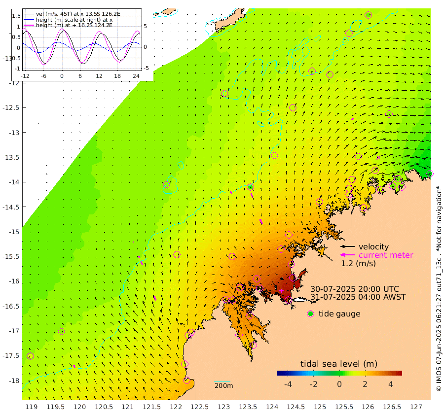 23cm/s -43T +10cm/s rms + 1cm/s 1T. NWSBRW 205m 32cm/s -28T +11cm/s rms + 6cm/s -110T. NWSROW 199m 49cm/s -25T +5cm/s rms + 2cm/s 65T. CAM050 58m 39cm/s -21T +12cm/s rms + 5cm/s 92T. CAM100 99m 8cm/s -19T +7cm/s rms + 1cm/s -85T. KIM400 396m 17cm/s -26T +9cm/s rms + 5cm/s -119T. KIM200 208m 34cm/s -23T +11cm/s rms + 5cm/s -147T. KIM100 99m 43cm/s -25T +8cm/s rms + 3cm/s -103T. KIM050 59m 26cm/s 43T +4cm/s rms + 2cm/s 23T. TIMORS88 91m 130cm Imperieuse Reef 71cm Mermaid Reef 190cm Broome 127cm Cape Baskerville 174cm Red Bluff 122cm Cape Boileau 65cm Scott Reef (WA) 96cm Ashmore Reef 264cm Karrakatta Bay 278cm Sunday Island 290cm Valentine Island 254cm Derby 297cm Port Usborne 275cm Bedford Islands 323cm Yampi Sound (Koolan Island) 325cm Macleay Island 195cm Adele Island 30cm Browse Island 411cm Shale Island 413cm Lizard Island 246cm Hall Point 248cm Degerando Island 225cm White Island 90cm Skua No. 4 Well 81cm Jabiru 159cm Maret Island 141cm Baudin Island 148cm Cape Voltaire (Krait Bay) 86cm Dillon Shoal 51cm Laminaria 181cm Port Warrender 111cm Troughton Island 130cm Cassini Island 101cm West Holothuria Reef Offshore 107cm Jar Island 130cm Lynher Bank 116cm Heywood Shoal 89cm Pee Shoal 66cm Van Cloon Shoal 55cm Carronade Island 53cm Guy Point 50cm Napier Broome Bay -2cm Lesueur Island