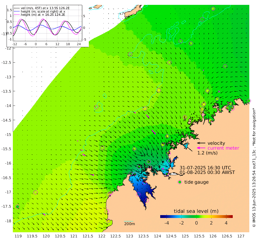 22cm/s 120T +10cm/s rms + 1cm/s 1T. NWSBRW 205m 32cm/s 137T +11cm/s rms + 6cm/s -110T. NWSROW 199m 78cm/s 141T +5cm/s rms + 2cm/s 65T. CAM050 58m 56cm/s 138T +12cm/s rms + 5cm/s 92T. CAM100 99m 11cm/s 116T +7cm/s rms + 1cm/s -85T. KIM400 396m 25cm/s 117T +9cm/s rms + 5cm/s -119T. KIM200 208m 47cm/s 124T +11cm/s rms + 5cm/s -147T. KIM100 99m 53cm/s 103T +8cm/s rms + 3cm/s -103T. KIM050 59m 12cm/s -164T +4cm/s rms + 2cm/s 23T. TIMORS88 91m -24cm Imperieuse Reef 80cm Mermaid Reef 148cm Broome 120cm Cape Baskerville 90cm Red Bluff 104cm Cape Boileau 68cm Scott Reef (WA) 59cm Ashmore Reef -25cm Karrakatta Bay -66cm Sunday Island -318cm Valentine Island -369cm Derby -262cm Port Usborne 17cm Bedford Islands 35cm Yampi Sound (Koolan Island) 34cm Macleay Island 69cm Adele Island 127cm Browse Island -6cm Shale Island -50cm Lizard Island 111cm Hall Point 81cm Degerando Island 98cm White Island 66cm Skua No. 4 Well 47cm Jabiru 114cm Maret Island 118cm Baudin Island 109cm Cape Voltaire (Krait Bay) 30cm Dillon Shoal 63cm Laminaria 92cm Port Warrender 65cm Troughton Island 112cm Cassini Island 83cm West Holothuria Reef Offshore 67cm Jar Island 71cm Lynher Bank 108cm Heywood Shoal 41cm Pee Shoal 34cm Van Cloon Shoal 65cm Carronade Island 69cm Guy Point 63cm Napier Broome Bay 36cm Lesueur Island