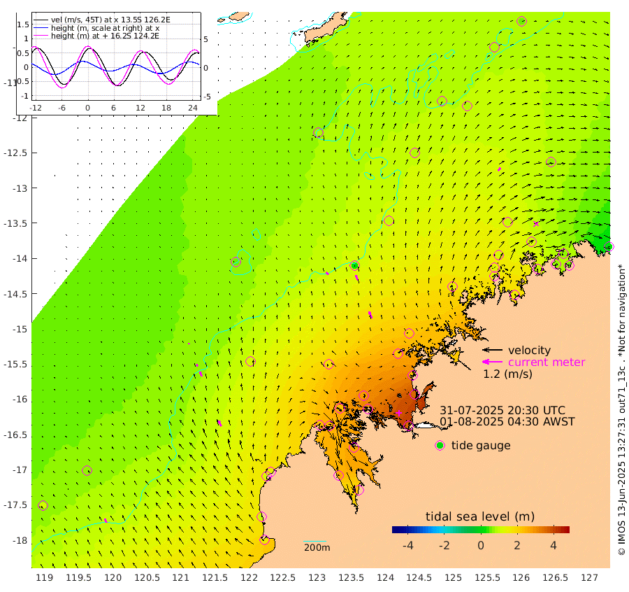 20cm/s -42T +10cm/s rms + 1cm/s 1T. NWSBRW 205m 28cm/s -28T +11cm/s rms + 6cm/s -110T. NWSROW 199m 44cm/s -25T +5cm/s rms + 2cm/s 65T. CAM050 58m 34cm/s -21T +12cm/s rms + 5cm/s 92T. CAM100 99m 7cm/s -18T +7cm/s rms + 1cm/s -85T. KIM400 396m 14cm/s -27T +9cm/s rms + 5cm/s -119T. KIM200 208m 30cm/s -24T +11cm/s rms + 5cm/s -147T. KIM100 99m 38cm/s -26T +8cm/s rms + 3cm/s -103T. KIM050 59m 21cm/s 40T +4cm/s rms + 2cm/s 23T. TIMORS88 91m 116cm Imperieuse Reef 65cm Mermaid Reef 161cm Broome 108cm Cape Baskerville 146cm Red Bluff 105cm Cape Boileau 59cm Scott Reef (WA) 88cm Ashmore Reef 231cm Karrakatta Bay 246cm Sunday Island 260cm Valentine Island 236cm Derby 267cm Port Usborne 231cm Bedford Islands 281cm Yampi Sound (Koolan Island) 283cm Macleay Island 170cm Adele Island 27cm Browse Island 357cm Shale Island 357cm Lizard Island 219cm Hall Point 212cm Degerando Island 198cm White Island 81cm Skua No. 4 Well 78cm Jabiru 138cm Maret Island 128cm Baudin Island 131cm Cape Voltaire (Krait Bay) 84cm Dillon Shoal 51cm Laminaria 161cm Port Warrender 107cm Troughton Island 116cm Cassini Island 96cm West Holothuria Reef Offshore 104cm Jar Island 114cm Lynher Bank 103cm Heywood Shoal 82cm Pee Shoal 68cm Van Cloon Shoal 61cm Carronade Island 60cm Guy Point 57cm Napier Broome Bay 19cm Lesueur Island