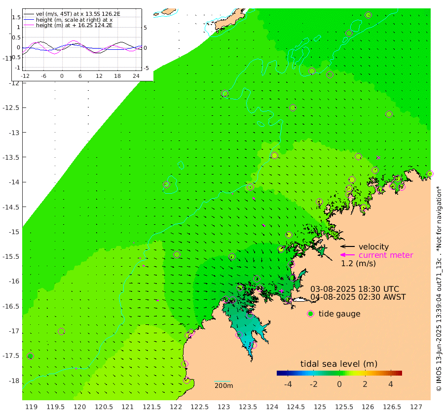 7cm/s 114T +10cm/s rms + 1cm/s 1T. NWSBRW 205m 10cm/s 127T +11cm/s rms + 6cm/s -110T. NWSROW 199m 28cm/s 134T +5cm/s rms + 2cm/s 65T. CAM050 58m 21cm/s 129T +12cm/s rms + 5cm/s 92T. CAM100 99m 4cm/s 102T +7cm/s rms + 1cm/s -85T. KIM400 396m 9cm/s 107T +9cm/s rms + 5cm/s -119T. KIM200 208m 18cm/s 116T +11cm/s rms + 5cm/s -147T. KIM100 99m 22cm/s 89T +8cm/s rms + 3cm/s -103T. KIM050 59m 5cm/s 104T +4cm/s rms + 2cm/s 23T. TIMORS88 91m 22cm Imperieuse Reef 58cm Mermaid Reef 97cm Broome 82cm Cape Baskerville 71cm Red Bluff 70cm Cape Boileau 47cm Scott Reef (WA) 53cm Ashmore Reef 30cm Karrakatta Bay 8cm Sunday Island -111cm Valentine Island -146cm Derby -88cm Port Usborne 52cm Bedford Islands 61cm Yampi Sound (Koolan Island) 26cm Macleay Island 50cm Adele Island 57cm Browse Island 56cm Shale Island 35cm Lizard Island 10cm Hall Point 76cm Degerando Island 76cm White Island 55cm Skua No. 4 Well 35cm Jabiru 80cm Maret Island 88cm Baudin Island 84cm Cape Voltaire (Krait Bay) 36cm Dillon Shoal 55cm Laminaria 80cm Port Warrender 71cm Troughton Island 85cm Cassini Island 66cm West Holothuria Reef Offshore 72cm Jar Island 60cm Lynher Bank 81cm Heywood Shoal 46cm Pee Shoal 50cm Van Cloon Shoal 66cm Carronade Island 68cm Guy Point 66cm Napier Broome Bay 72cm Lesueur Island