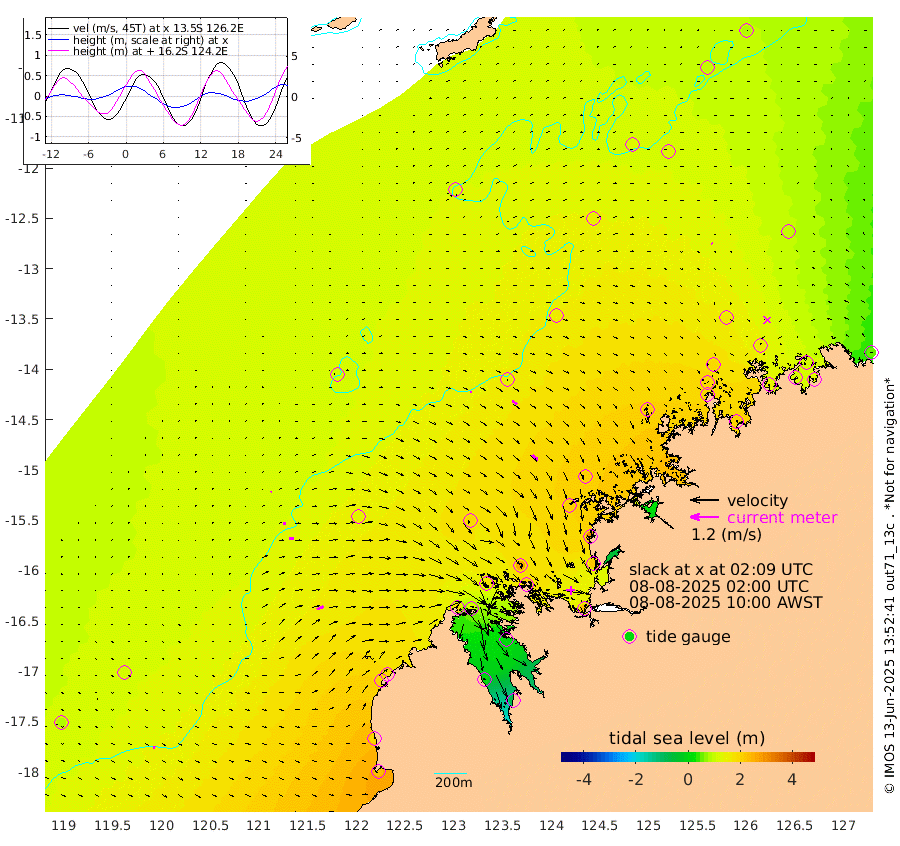 6cm/s 58T +10cm/s rms + 1cm/s 1T. NWSBRW 205m 9cm/s 95T +11cm/s rms + 6cm/s -110T. NWSROW 199m 32cm/s 137T +5cm/s rms + 2cm/s 65T. CAM050 58m 24cm/s 125T +12cm/s rms + 5cm/s 92T. CAM100 99m 6cm/s 84T +7cm/s rms + 1cm/s -85T. KIM400 396m 12cm/s 96T +9cm/s rms + 5cm/s -119T. KIM200 208m 19cm/s 95T +11cm/s rms + 5cm/s -147T. KIM100 99m 30cm/s 69T +8cm/s rms + 3cm/s -103T. KIM050 59m 4cm/s -47T +4cm/s rms + 2cm/s 23T. TIMORS88 91m 75cm Imperieuse Reef 111cm Mermaid Reef 225cm Broome 181cm Cape Baskerville 184cm Red Bluff 182cm Cape Boileau 107cm Scott Reef (WA) 126cm Ashmore Reef 165cm Karrakatta Bay 125cm Sunday Island 11cm Valentine Island -70cm Derby 13cm Port Usborne 172cm Bedford Islands 211cm Yampi Sound (Koolan Island) 269cm Macleay Island 194cm Adele Island 145cm Browse Island 227cm Shale Island 219cm Lizard Island 302cm Hall Point 205cm Degerando Island 206cm White Island 138cm Skua No. 4 Well 127cm Jabiru 206cm Maret Island 192cm Baudin Island 185cm Cape Voltaire (Krait Bay) 105cm Dillon Shoal 89cm Laminaria 199cm Port Warrender 159cm Troughton Island 192cm Cassini Island 154cm West Holothuria Reef Offshore 140cm Jar Island 132cm Lynher Bank 165cm Heywood Shoal 126cm Pee Shoal 105cm Van Cloon Shoal 114cm Carronade Island 118cm Guy Point 124cm Napier Broome Bay 59cm Lesueur Island