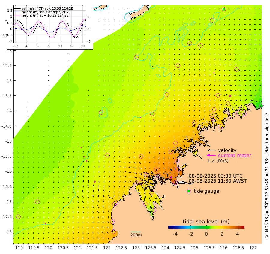 12cm/s -32T +10cm/s rms + 1cm/s 1T. NWSBRW 205m 16cm/s -18T +11cm/s rms + 6cm/s -110T. NWSROW 199m 10cm/s -19T +5cm/s rms + 2cm/s 65T. CAM050 58m 11cm/s -5T +12cm/s rms + 5cm/s 92T. CAM100 99m 5cm/s -5T +7cm/s rms + 1cm/s -85T. KIM400 396m 9cm/s -7T +9cm/s rms + 5cm/s -119T. KIM200 208m 17cm/s -5T +11cm/s rms + 5cm/s -147T. KIM100 99m 26cm/s 7T +8cm/s rms + 3cm/s -103T. KIM050 59m 16cm/s 20T +4cm/s rms + 2cm/s 23T. TIMORS88 91m 104cm Imperieuse Reef 78cm Mermaid Reef 207cm Broome 162cm Cape Baskerville 208cm Red Bluff 168cm Cape Boileau 75cm Scott Reef (WA) 108cm Ashmore Reef 233cm Karrakatta Bay 207cm Sunday Island 172cm Valentine Island 99cm Derby 154cm Port Usborne 226cm Bedford Islands 267cm Yampi Sound (Koolan Island) 306cm Macleay Island 199cm Adele Island 86cm Browse Island 320cm Shale Island 290cm Lizard Island 337cm Hall Point 234cm Degerando Island 212cm White Island 110cm Skua No. 4 Well 99cm Jabiru 187cm Maret Island 176cm Baudin Island 167cm Cape Voltaire (Krait Bay) 99cm Dillon Shoal 44cm Laminaria 203cm Port Warrender 142cm Troughton Island 170cm Cassini Island 132cm West Holothuria Reef Offshore 129cm Jar Island 116cm Lynher Bank 138cm Heywood Shoal 107cm Pee Shoal 93cm Van Cloon Shoal 89cm Carronade Island 89cm Guy Point 96cm Napier Broome Bay 30cm Lesueur Island
