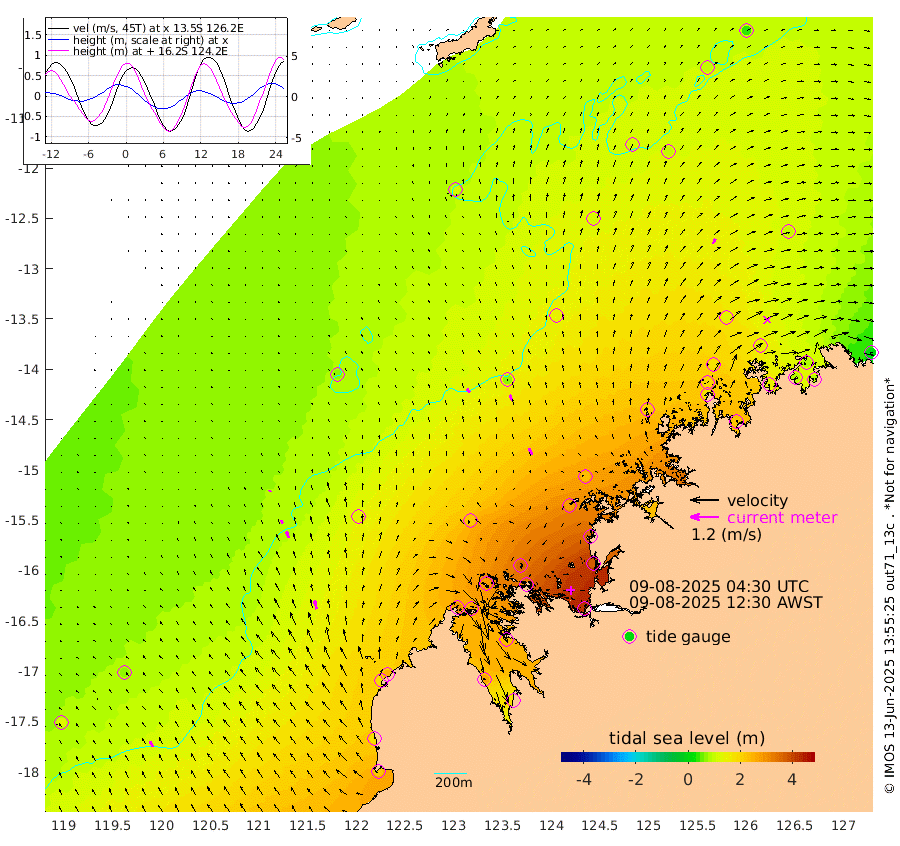 20cm/s -41T +10cm/s rms + 1cm/s 1T. NWSBRW 205m 27cm/s -26T +11cm/s rms + 6cm/s -110T. NWSROW 199m 31cm/s -28T +5cm/s rms + 2cm/s 65T. CAM050 58m 27cm/s -21T +12cm/s rms + 5cm/s 92T. CAM100 99m 8cm/s -24T +7cm/s rms + 1cm/s -85T. KIM400 396m 15cm/s -26T +9cm/s rms + 5cm/s -119T. KIM200 208m 29cm/s -21T +11cm/s rms + 5cm/s -147T. KIM100 99m 37cm/s -13T +8cm/s rms + 3cm/s -103T. KIM050 59m 23cm/s 29T +4cm/s rms + 2cm/s 23T. TIMORS88 91m 130cm Imperieuse Reef 74cm Mermaid Reef 224cm Broome 170cm Cape Baskerville 240cm Red Bluff 178cm Cape Boileau 71cm Scott Reef (WA) 111cm Ashmore Reef 289cm Karrakatta Bay 264cm Sunday Island 256cm Valentine Island 178cm Derby 232cm Port Usborne 277cm Bedford Islands 325cm Yampi Sound (Koolan Island) 349cm Macleay Island 219cm Adele Island 65cm Browse Island 406cm Shale Island 374cm Lizard Island 350cm Hall Point 273cm Degerando Island 239cm White Island 111cm Skua No. 4 Well 90cm Jabiru 197cm Maret Island 184cm Baudin Island 179cm Cape Voltaire (Krait Bay) 104cm Dillon Shoal 34cm Laminaria 222cm Port Warrender 144cm Troughton Island 176cm Cassini Island 132cm West Holothuria Reef Offshore 136cm Jar Island 125cm Lynher Bank 145cm Heywood Shoal 109cm Pee Shoal 93cm Van Cloon Shoal 81cm Carronade Island 80cm Guy Point 88cm Napier Broome Bay 11cm Lesueur Island