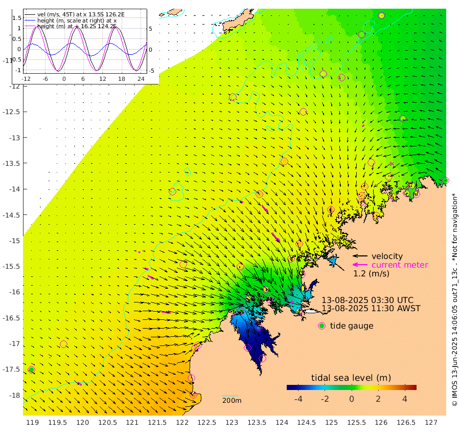 25cm/s 117T +10cm/s rms + 1cm/s 1T. NWSBRW 205m 37cm/s 129T +11cm/s rms + 6cm/s -110T. NWSROW 199m 103cm/s 141T +5cm/s rms + 2cm/s 65T. CAM050 58m 71cm/s 137T +12cm/s rms + 5cm/s 92T. CAM100 99m 16cm/s 109T +7cm/s rms + 1cm/s -85T. KIM400 396m 32cm/s 114T +9cm/s rms + 5cm/s -119T. KIM200 208m 57cm/s 120T +11cm/s rms + 5cm/s -147T. KIM100 99m 73cm/s 96T +8cm/s rms + 3cm/s -103T. KIM050 59m 21cm/s -132T +4cm/s rms + 2cm/s 23T. TIMORS88 91m 5cm Imperieuse Reef 141cm Mermaid Reef 288cm Broome 215cm Cape Baskerville 180cm Red Bluff 225cm Cape Boileau 132cm Scott Reef (WA) 111cm Ashmore Reef 39cm Karrakatta Bay -3cm Sunday Island -381cm Valentine Island -478cm Derby -297cm Port Usborne 119cm Bedford Islands 152cm Yampi Sound (Koolan Island) 181cm Macleay Island 173cm Adele Island 223cm Browse Island 106cm Shale Island 132cm Lizard Island 167cm Hall Point 203cm Degerando Island 219cm White Island 131cm Skua No. 4 Well 70cm Jabiru 228cm Maret Island 198cm Baudin Island 213cm Cape Voltaire (Krait Bay) 55cm Dillon Shoal 95cm Laminaria 202cm Port Warrender 118cm Troughton Island 198cm Cassini Island 146cm West Holothuria Reef Offshore 119cm Jar Island 159cm Lynher Bank 201cm Heywood Shoal 94cm Pee Shoal 69cm Van Cloon Shoal 110cm Carronade Island 114cm Guy Point 125cm Napier Broome Bay 20cm Lesueur Island