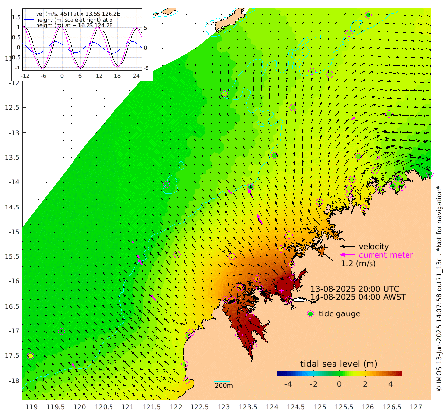 39cm/s -50T +10cm/s rms + 1cm/s 1T. NWSBRW 205m 51cm/s -36T +11cm/s rms + 6cm/s -110T. NWSROW 199m 95cm/s -31T +5cm/s rms + 2cm/s 65T. CAM050 58m 71cm/s -30T +12cm/s rms + 5cm/s 92T. CAM100 99m 14cm/s -42T +7cm/s rms + 1cm/s -85T. KIM400 396m 32cm/s -44T +9cm/s rms + 5cm/s -119T. KIM200 208m 61cm/s -37T +11cm/s rms + 5cm/s -147T. KIM100 99m 68cm/s -48T +8cm/s rms + 3cm/s -103T. KIM050 59m 36cm/s 42T +4cm/s rms + 2cm/s 23T. TIMORS88 91m 144cm Imperieuse Reef 14cm Mermaid Reef 97cm Broome 58cm Cape Baskerville 137cm Red Bluff 52cm Cape Boileau 11cm Scott Reef (WA) 63cm Ashmore Reef 295cm Karrakatta Bay 302cm Sunday Island 466cm Valentine Island 456cm Derby 437cm Port Usborne 259cm Bedford Islands 292cm Yampi Sound (Koolan Island) 285cm Macleay Island 144cm Adele Island -54cm Browse Island 414cm Shale Island 393cm Lizard Island 208cm Hall Point 194cm Degerando Island 147cm White Island 52cm Skua No. 4 Well 63cm Jabiru 89cm Maret Island 83cm Baudin Island 76cm Cape Voltaire (Krait Bay) 68cm Dillon Shoal 5cm Laminaria 106cm Port Warrender 76cm Troughton Island 74cm Cassini Island 48cm West Holothuria Reef Offshore 69cm Jar Island 67cm Lynher Bank 42cm Heywood Shoal 62cm Pee Shoal 45cm Van Cloon Shoal 7cm Carronade Island -3cm Guy Point 2cm Napier Broome Bay -21cm Lesueur Island
