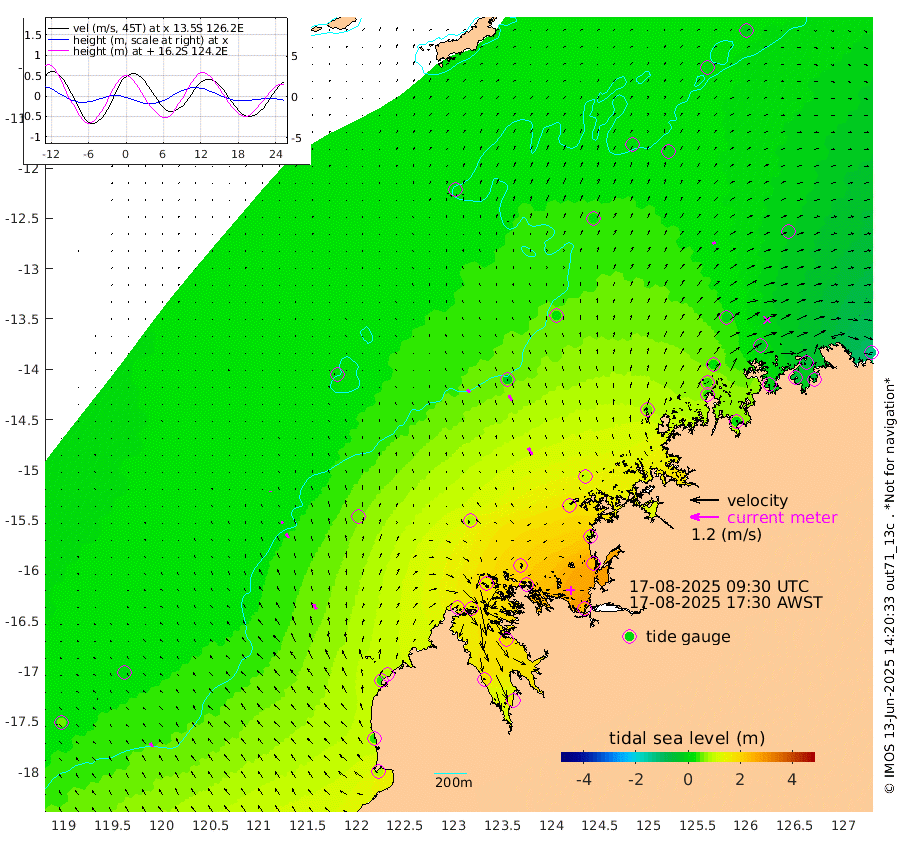 16cm/s -43T +10cm/s rms + 1cm/s 1T. NWSBRW 205m 20cm/s -30T +11cm/s rms + 6cm/s -110T. NWSROW 199m 32cm/s -31T +5cm/s rms + 2cm/s 65T. CAM050 58m 26cm/s -28T +12cm/s rms + 5cm/s 92T. CAM100 99m 4cm/s -12T +7cm/s rms + 1cm/s -85T. KIM400 396m 10cm/s -33T +9cm/s rms + 5cm/s -119T. KIM200 208m 21cm/s -33T +11cm/s rms + 5cm/s -147T. KIM100 99m 26cm/s -33T +8cm/s rms + 3cm/s -103T. KIM050 59m 11cm/s 53T +4cm/s rms + 2cm/s 23T. TIMORS88 91m 52cm Imperieuse Reef 13cm Mermaid Reef 83cm Broome 42cm Cape Baskerville 76cm Red Bluff 41cm Cape Boileau 12cm Scott Reef (WA) 17cm Ashmore Reef 151cm Karrakatta Bay 155cm Sunday Island 166cm Valentine Island 152cm Derby 181cm Port Usborne 148cm Bedford Islands 167cm Yampi Sound (Koolan Island) 183cm Macleay Island 86cm Adele Island -11cm Browse Island 230cm Shale Island 240cm Lizard Island 86cm Hall Point 110cm Degerando Island 93cm White Island 20cm Skua No. 4 Well 5cm Jabiru 49cm Maret Island 35cm Baudin Island 31cm Cape Voltaire (Krait Bay) 6cm Dillon Shoal -2cm Laminaria 28cm Port Warrender -16cm Troughton Island 15cm Cassini Island -4cm West Holothuria Reef Offshore -10cm Jar Island 45cm Lynher Bank 27cm Heywood Shoal 6cm Pee Shoal -29cm Van Cloon Shoal -55cm Carronade Island -56cm Guy Point -59cm Napier Broome Bay -120cm Lesueur Island