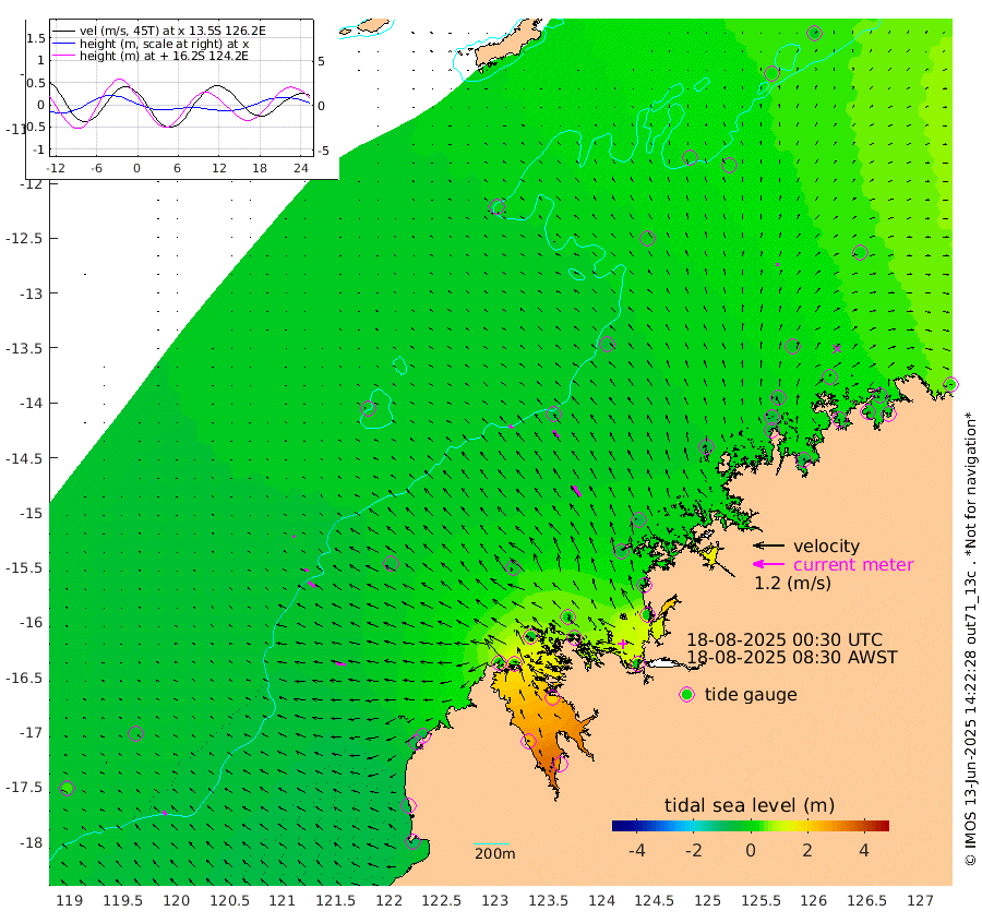 18cm/s -52T +10cm/s rms + 1cm/s 1T. NWSBRW 205m 19cm/s -44T +11cm/s rms + 6cm/s -110T. NWSROW 199m 47cm/s -36T +5cm/s rms + 2cm/s 65T. CAM050 58m 34cm/s -41T +12cm/s rms + 5cm/s 92T. CAM100 99m 7cm/s -65T +7cm/s rms + 1cm/s -85T. KIM400 396m 16cm/s -62T +9cm/s rms + 5cm/s -119T. KIM200 208m 30cm/s -51T +11cm/s rms + 5cm/s -147T. KIM100 99m 34cm/s -79T +8cm/s rms + 3cm/s -103T. KIM050 59m 11cm/s 4T +4cm/s rms + 2cm/s 23T. TIMORS88 91m 32cm Imperieuse Reef -43cm Mermaid Reef -99cm Broome -69cm Cape Baskerville -69cm Red Bluff -63cm Cape Boileau -30cm Scott Reef (WA) -9cm Ashmore Reef 28cm Karrakatta Bay 37cm Sunday Island 247cm Valentine Island 287cm Derby 201cm Port Usborne -16cm Bedford Islands -34cm Yampi Sound (Koolan Island) 3cm Macleay Island -27cm Adele Island -59cm Browse Island -9cm Shale Island -7cm Lizard Island -7cm Hall Point -54cm Degerando Island -74cm White Island -9cm Skua No. 4 Well 26cm Jabiru -51cm Maret Island -55cm Baudin Island -53cm Cape Voltaire (Krait Bay) 18cm Dillon Shoal -20cm Laminaria -48cm Port Warrender 12cm Troughton Island -34cm Cassini Island -22cm West Holothuria Reef Offshore -12cm Jar Island -46cm Lynher Bank -60cm Heywood Shoal 13cm Pee Shoal 16cm Van Cloon Shoal -6cm Carronade Island -10cm Guy Point -3cm Napier Broome Bay 34cm Lesueur Island