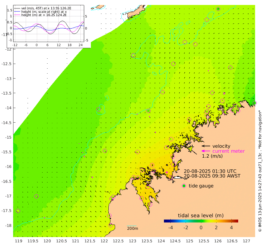 11cm/s -33T +10cm/s rms + 1cm/s 1T. NWSBRW 205m 12cm/s -20T +11cm/s rms + 6cm/s -110T. NWSROW 199m 12cm/s -19T +5cm/s rms + 2cm/s 65T. CAM050 58m 11cm/s -15T +12cm/s rms + 5cm/s 92T. CAM100 99m 3cm/s -12T +7cm/s rms + 1cm/s -85T. KIM400 396m 6cm/s -20T +9cm/s rms + 5cm/s -119T. KIM200 208m 14cm/s -14T +11cm/s rms + 5cm/s -147T. KIM100 99m 16cm/s -10T +8cm/s rms + 3cm/s -103T. KIM050 59m 11cm/s 11T +4cm/s rms + 2cm/s 23T. TIMORS88 91m 79cm Imperieuse Reef 49cm Mermaid Reef 104cm Broome 82cm Cape Baskerville 80cm Red Bluff 92cm Cape Boileau 58cm Scott Reef (WA) 77cm Ashmore Reef 139cm Karrakatta Bay 133cm Sunday Island 165cm Valentine Island 147cm Derby 159cm Port Usborne 137cm Bedford Islands 145cm Yampi Sound (Koolan Island) 202cm Macleay Island 124cm Adele Island 56cm Browse Island 176cm Shale Island 174cm Lizard Island 152cm Hall Point 128cm Degerando Island 103cm White Island 88cm Skua No. 4 Well 91cm Jabiru 111cm Maret Island 88cm Baudin Island 99cm Cape Voltaire (Krait Bay) 82cm Dillon Shoal 44cm Laminaria 110cm Port Warrender 106cm Troughton Island 106cm Cassini Island 83cm West Holothuria Reef Offshore 78cm Jar Island 72cm Lynher Bank 83cm Heywood Shoal 91cm Pee Shoal 72cm Van Cloon Shoal 63cm Carronade Island 65cm Guy Point 71cm Napier Broome Bay 38cm Lesueur Island