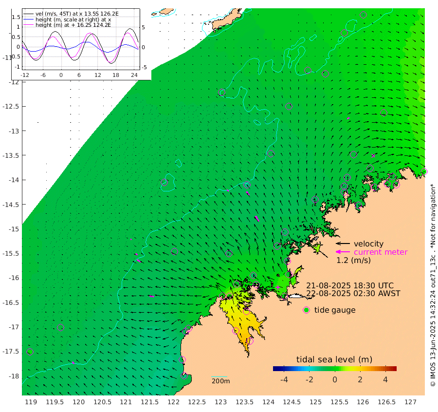 19cm/s -55T +10cm/s rms + 1cm/s 1T. NWSBRW 205m 22cm/s -47T +11cm/s rms + 6cm/s -110T. NWSROW 199m 55cm/s -34T +5cm/s rms + 2cm/s 65T. CAM050 58m 39cm/s -38T +12cm/s rms + 5cm/s 92T. CAM100 99m 9cm/s -67T +7cm/s rms + 1cm/s -85T. KIM400 396m 20cm/s -63T +9cm/s rms + 5cm/s -119T. KIM200 208m 34cm/s -56T +11cm/s rms + 5cm/s -147T. KIM100 99m 38cm/s -79T +8cm/s rms + 3cm/s -103T. KIM050 59m 23cm/s 66T +4cm/s rms + 2cm/s 23T. TIMORS88 91m 16cm Imperieuse Reef -59cm Mermaid Reef -123cm Broome -89cm Cape Baskerville -36cm Red Bluff -90cm Cape Boileau -60cm Scott Reef (WA) -39cm Ashmore Reef 5cm Karrakatta Bay 26cm Sunday Island 167cm Valentine Island 215cm Derby 134cm Port Usborne -31cm Bedford Islands -50cm Yampi Sound (Koolan Island) -113cm Macleay Island -79cm Adele Island -126cm Browse Island -23cm Shale Island -40cm Lizard Island -100cm Hall Point -71cm Degerando Island -94cm White Island -55cm Skua No. 4 Well -34cm Jabiru -98cm Maret Island -80cm Baudin Island -84cm Cape Voltaire (Krait Bay) -14cm Dillon Shoal -33cm Laminaria -77cm Port Warrender -45cm Troughton Island -75cm Cassini Island -57cm West Holothuria Reef Offshore -36cm Jar Island -65cm Lynher Bank -74cm Heywood Shoal -31cm Pee Shoal -9cm Van Cloon Shoal -33cm Carronade Island -39cm Guy Point -31cm Napier Broome Bay 17cm Lesueur Island