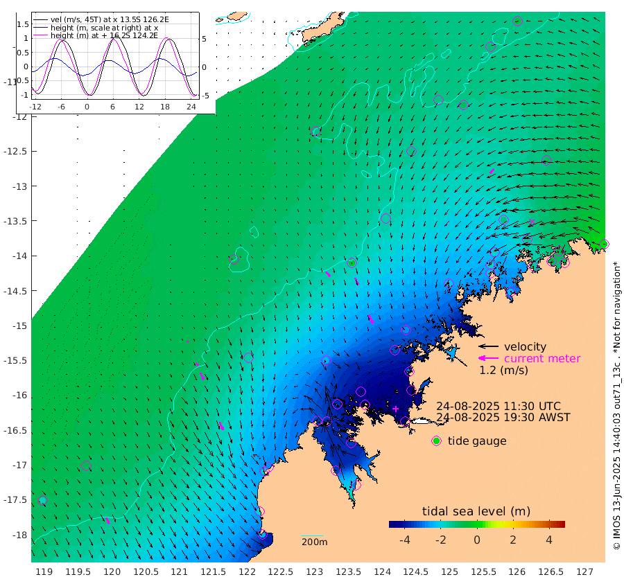 37cm/s 136T +10cm/s rms + 1cm/s 1T. NWSBRW 205m 41cm/s 153T +11cm/s rms + 6cm/s -110T. NWSROW 199m 58cm/s 155T +5cm/s rms + 2cm/s 65T. CAM050 58m 47cm/s 158T +12cm/s rms + 5cm/s 92T. CAM100 99m 10cm/s 159T +7cm/s rms + 1cm/s -85T. KIM400 396m 22cm/s 148T +9cm/s rms + 5cm/s -119T. KIM200 208m 46cm/s 154T +11cm/s rms + 5cm/s -147T. KIM100 99m 52cm/s 156T +8cm/s rms + 3cm/s -103T. KIM050 59m 35cm/s -135T +4cm/s rms + 2cm/s 23T. TIMORS88 91m -171cm Imperieuse Reef -88cm Mermaid Reef -253cm Broome -183cm Cape Baskerville -271cm Red Bluff -193cm Cape Boileau -84cm Scott Reef (WA) -127cm Ashmore Reef -358cm Karrakatta Bay -361cm Sunday Island -357cm Valentine Island -289cm Derby -347cm Port Usborne -371cm Bedford Islands -405cm Yampi Sound (Koolan Island) -405cm Macleay Island -253cm Adele Island -40cm Browse Island -510cm Shale Island -506cm Lizard Island -302cm Hall Point -330cm Degerando Island -274cm White Island -126cm Skua No. 4 Well -102cm Jabiru -216cm Maret Island -190cm Baudin Island -196cm Cape Voltaire (Krait Bay) -113cm Dillon Shoal -54cm Laminaria -240cm Port Warrender -145cm Troughton Island -183cm Cassini Island -131cm West Holothuria Reef Offshore -138cm Jar Island -162cm Lynher Bank -162cm Heywood Shoal -127cm Pee Shoal -99cm Van Cloon Shoal -71cm Carronade Island -68cm Guy Point -81cm Napier Broome Bay 8cm Lesueur Island