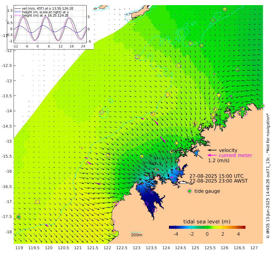 33cm/s 122T +10cm/s rms + 1cm/s 1T. NWSBRW 205m 45cm/s 137T +11cm/s rms + 6cm/s -110T. NWSROW 199m 108cm/s 141T +5cm/s rms + 2cm/s 65T. CAM050 58m 77cm/s 139T +12cm/s rms + 5cm/s 92T. CAM100 99m 15cm/s 116T +7cm/s rms + 1cm/s -85T. KIM400 396m 35cm/s 118T +9cm/s rms + 5cm/s -119T. KIM200 208m 64cm/s 125T +11cm/s rms + 5cm/s -147T. KIM100 99m 72cm/s 105T +8cm/s rms + 3cm/s -103T. KIM050 59m 21cm/s -151T +4cm/s rms + 2cm/s 23T. TIMORS88 91m -40cm Imperieuse Reef 106cm Mermaid Reef 189cm Broome 153cm Cape Baskerville 102cm Red Bluff 137cm Cape Boileau 94cm Scott Reef (WA) 76cm Ashmore Reef -50cm Karrakatta Bay -97cm Sunday Island -415cm Valentine Island -484cm Derby -349cm Port Usborne 8cm Bedford Islands 32cm Yampi Sound (Koolan Island) 59cm Macleay Island 96cm Adele Island 183cm Browse Island -34cm Shale Island -70cm Lizard Island 125cm Hall Point 94cm Degerando Island 125cm White Island 89cm Skua No. 4 Well 59cm Jabiru 149cm Maret Island 146cm Baudin Island 140cm Cape Voltaire (Krait Bay) 38cm Dillon Shoal 83cm Laminaria 120cm Port Warrender 85cm Troughton Island 144cm Cassini Island 111cm West Holothuria Reef Offshore 82cm Jar Island 93cm Lynher Bank 138cm Heywood Shoal 58cm Pee Shoal 44cm Van Cloon Shoal 86cm Carronade Island 92cm Guy Point 85cm Napier Broome Bay 40cm Lesueur Island