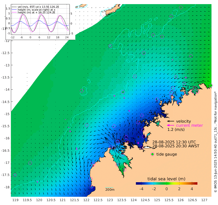 28cm/s 142T +10cm/s rms + 1cm/s 1T. NWSBRW 205m 25cm/s 160T +11cm/s rms + 6cm/s -110T. NWSROW 199m 25cm/s 162T +5cm/s rms + 2cm/s 65T. CAM050 58m 24cm/s 169T +12cm/s rms + 5cm/s 92T. CAM100 99m 7cm/s -176T +7cm/s rms + 1cm/s -85T. KIM400 396m 13cm/s 174T +9cm/s rms + 5cm/s -119T. KIM200 208m 29cm/s 172T +11cm/s rms + 5cm/s -147T. KIM100 99m 40cm/s 176T +8cm/s rms + 3cm/s -103T. KIM050 59m 17cm/s -162T +4cm/s rms + 2cm/s 23T. TIMORS88 91m -135cm Imperieuse Reef -101cm Mermaid Reef -294cm Broome -199cm Cape Baskerville -269cm Red Bluff -206cm Cape Boileau -90cm Scott Reef (WA) -121cm Ashmore Reef -306cm Karrakatta Bay -291cm Sunday Island -192cm Valentine Island -105cm Derby -210cm Port Usborne -324cm Bedford Islands -401cm Yampi Sound (Koolan Island) -399cm Macleay Island -254cm Adele Island -94cm Browse Island -488cm Shale Island -508cm Lizard Island -356cm Hall Point -332cm Degerando Island -312cm White Island -117cm Skua No. 4 Well -83cm Jabiru -236cm Maret Island -210cm Baudin Island -219cm Cape Voltaire (Krait Bay) -87cm Dillon Shoal -46cm Laminaria -260cm Port Warrender -140cm Troughton Island -193cm Cassini Island -141cm West Holothuria Reef Offshore -148cm Jar Island -171cm Lynher Bank -172cm Heywood Shoal -103cm Pee Shoal -80cm Van Cloon Shoal -82cm Carronade Island -76cm Guy Point -86cm Napier Broome Bay 20cm Lesueur Island