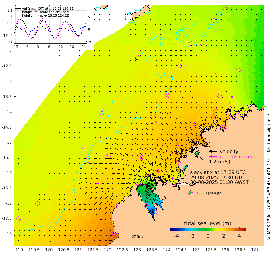 5cm/s 48T +10cm/s rms + 1cm/s 1T. NWSBRW 205m 12cm/s 93T +11cm/s rms + 6cm/s -110T. NWSROW 199m 43cm/s 134T +5cm/s rms + 2cm/s 65T. CAM050 58m 30cm/s 121T +12cm/s rms + 5cm/s 92T. CAM100 99m 8cm/s 80T +7cm/s rms + 1cm/s -85T. KIM400 396m 17cm/s 93T +9cm/s rms + 5cm/s -119T. KIM200 208m 28cm/s 94T +11cm/s rms + 5cm/s -147T. KIM100 99m 42cm/s 63T +8cm/s rms + 3cm/s -103T. KIM050 59m 5cm/s 78T +4cm/s rms + 2cm/s 23T. TIMORS88 91m 87cm Imperieuse Reef 144cm Mermaid Reef 322cm Broome 242cm Cape Baskerville 258cm Red Bluff 231cm Cape Boileau 126cm Scott Reef (WA) 145cm Ashmore Reef 203cm Karrakatta Bay 161cm Sunday Island -100cm Valentine Island -196cm Derby -47cm Port Usborne 244cm Bedford Islands 309cm Yampi Sound (Koolan Island) 305cm Macleay Island 237cm Adele Island 168cm Browse Island 334cm Shale Island 299cm Lizard Island 306cm Hall Point 296cm Degerando Island 297cm White Island 149cm Skua No. 4 Well 116cm Jabiru 261cm Maret Island 255cm Baudin Island 249cm Cape Voltaire (Krait Bay) 106cm Dillon Shoal 102cm Laminaria 263cm Port Warrender 174cm Troughton Island 239cm Cassini Island 182cm West Holothuria Reef Offshore 177cm Jar Island 183cm Lynher Bank 218cm Heywood Shoal 123cm Pee Shoal 106cm Van Cloon Shoal 131cm Carronade Island 133cm Guy Point 132cm Napier Broome Bay 56cm Lesueur Island