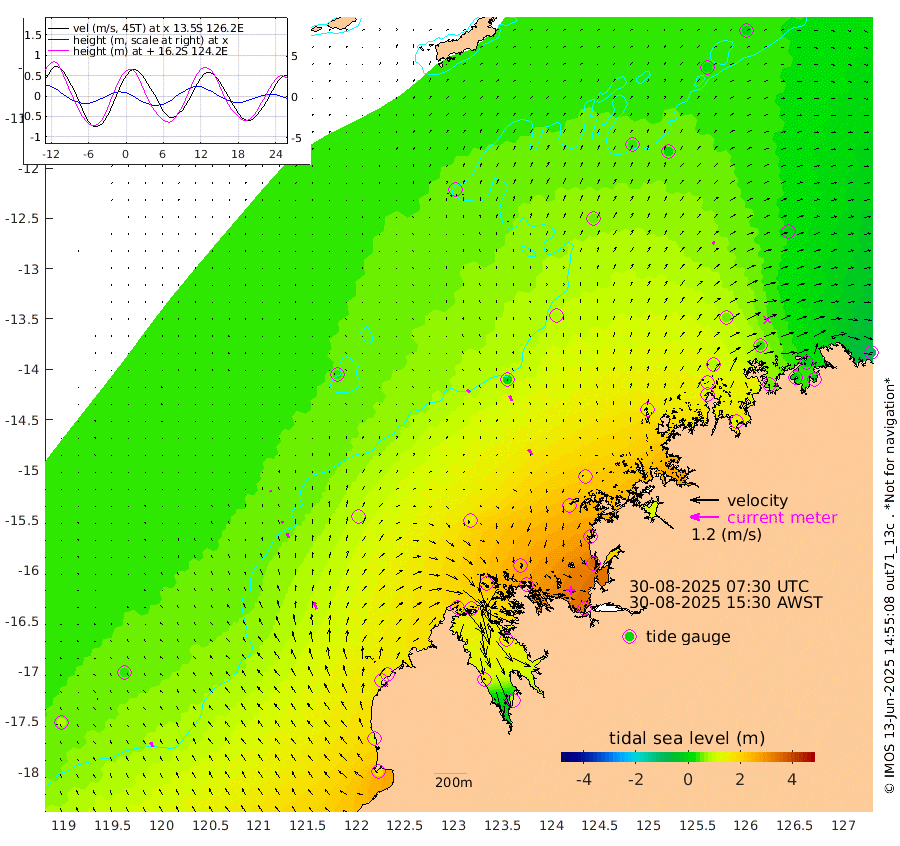 18cm/s -42T +10cm/s rms + 1cm/s 1T. NWSBRW 205m 22cm/s -25T +11cm/s rms + 6cm/s -110T. NWSROW 199m 28cm/s -35T +5cm/s rms + 2cm/s 65T. CAM050 58m 23cm/s -26T +12cm/s rms + 5cm/s 92T. CAM100 99m 5cm/s -9T +7cm/s rms + 1cm/s -85T. KIM400 396m 10cm/s -21T +9cm/s rms + 5cm/s -119T. KIM200 208m 21cm/s -24T +11cm/s rms + 5cm/s -147T. KIM100 99m 30cm/s -17T +8cm/s rms + 3cm/s -103T. KIM050 59m 12cm/s 37T +4cm/s rms + 2cm/s 23T. TIMORS88 91m 78cm Imperieuse Reef 44cm Mermaid Reef 170cm Broome 107cm Cape Baskerville 177cm Red Bluff 107cm Cape Boileau 33cm Scott Reef (WA) 52cm Ashmore Reef 211cm Karrakatta Bay 195cm Sunday Island 160cm Valentine Island 98cm Derby 162cm Port Usborne 206cm Bedford Islands 263cm Yampi Sound (Koolan Island) 253cm Macleay Island 145cm Adele Island 24cm Browse Island 340cm Shale Island 349cm Lizard Island 229cm Hall Point 197cm Degerando Island 188cm White Island 47cm Skua No. 4 Well 16cm Jabiru 121cm Maret Island 109cm Baudin Island 105cm Cape Voltaire (Krait Bay) 29cm Dillon Shoal 6cm Laminaria 127cm Port Warrender 39cm Troughton Island 84cm Cassini Island 52cm West Holothuria Reef Offshore 55cm Jar Island 87cm Lynher Bank 85cm Heywood Shoal 32cm Pee Shoal 7cm Van Cloon Shoal -3cm Carronade Island -7cm Guy Point -7cm Napier Broome Bay -90cm Lesueur Island