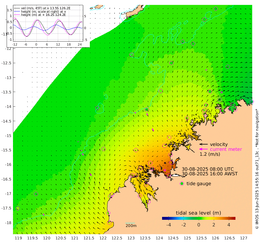 21cm/s -44T +10cm/s rms + 1cm/s 1T. NWSBRW 205m 27cm/s -31T +11cm/s rms + 6cm/s -110T. NWSROW 199m 43cm/s -34T +5cm/s rms + 2cm/s 65T. CAM050 58m 34cm/s -30T +12cm/s rms + 5cm/s 92T. CAM100 99m 6cm/s -26T +7cm/s rms + 1cm/s -85T. KIM400 396m 14cm/s -36T +9cm/s rms + 5cm/s -119T. KIM200 208m 29cm/s -34T +11cm/s rms + 5cm/s -147T. KIM100 99m 35cm/s -34T +8cm/s rms + 3cm/s -103T. KIM050 59m 15cm/s 42T +4cm/s rms + 2cm/s 23T. TIMORS88 91m 75cm Imperieuse Reef 22cm Mermaid Reef 117cm Broome 69cm Cape Baskerville 140cm Red Bluff 68cm Cape Boileau 14cm Scott Reef (WA) 33cm Ashmore Reef 199cm Karrakatta Bay 194cm Sunday Island 224cm Valentine Island 180cm Derby 212cm Port Usborne 182cm Bedford Islands 230cm Yampi Sound (Koolan Island) 222cm Macleay Island 115cm Adele Island -12cm Browse Island 310cm Shale Island 321cm Lizard Island 201cm Hall Point 157cm Degerando Island 147cm White Island 27cm Skua No. 4 Well 9cm Jabiru 80cm Maret Island 72cm Baudin Island 66cm Cape Voltaire (Krait Bay) 21cm Dillon Shoal -5cm Laminaria 89cm Port Warrender 17cm Troughton Island 46cm Cassini Island 27cm West Holothuria Reef Offshore 30cm Jar Island 61cm Lynher Bank 51cm Heywood Shoal 18cm Pee Shoal -5cm Van Cloon Shoal -23cm Carronade Island -26cm Guy Point -28cm Napier Broome Bay -95cm Lesueur Island