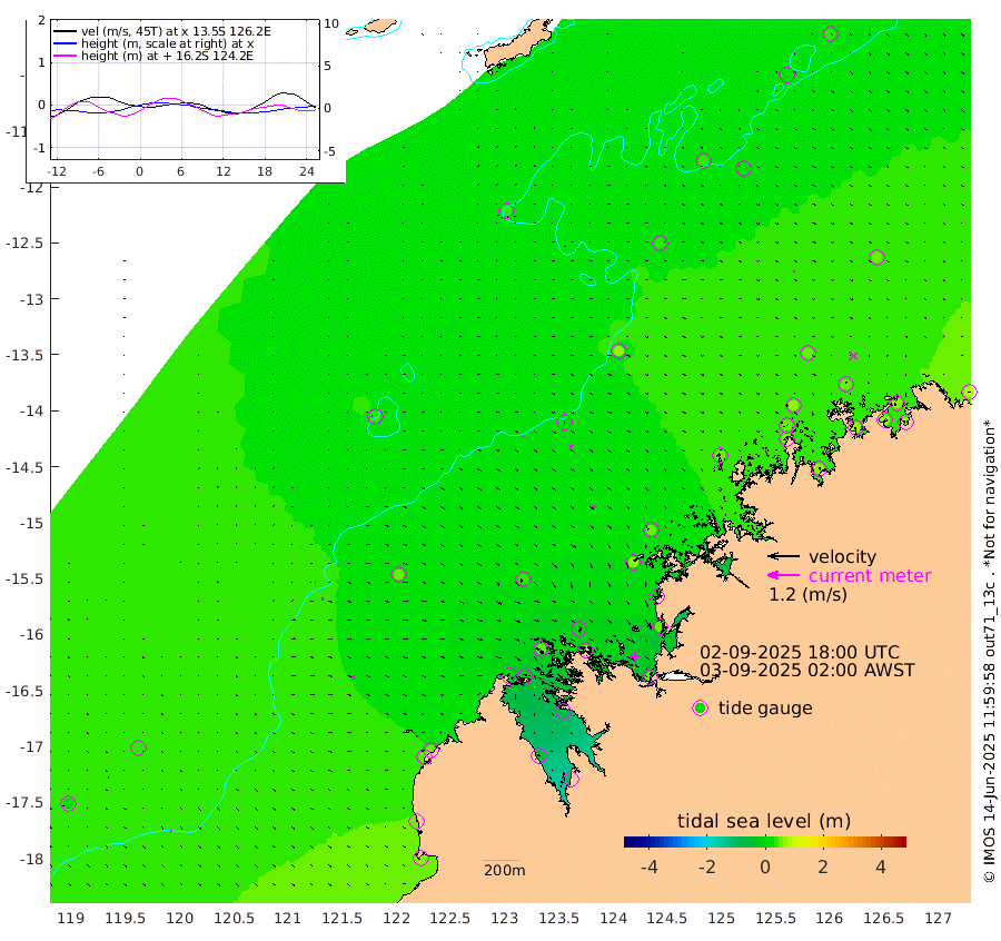 3cm/s 94T +10cm/s rms + 1cm/s 1T. NWSBRW 205m 4cm/s 114T +11cm/s rms + 6cm/s -110T. NWSROW 199m 12cm/s 124T +5cm/s rms + 2cm/s 65T. CAM050 58m 9cm/s 116T +12cm/s rms + 5cm/s 92T. CAM100 99m 1cm/s 85T +7cm/s rms + 1cm/s -85T. KIM400 396m 4cm/s 96T +9cm/s rms + 5cm/s -119T. KIM200 208m 8cm/s 105T +11cm/s rms + 5cm/s -147T. KIM100 99m 11cm/s 76T +8cm/s rms + 3cm/s -103T. KIM050 59m 6cm/s 103T +4cm/s rms + 2cm/s 23T. TIMORS88 91m 29cm Imperieuse Reef 43cm Mermaid Reef 68cm Broome 58cm Cape Baskerville 56cm Red Bluff 57cm Cape Boileau 36cm Scott Reef (WA) 40cm Ashmore Reef 24cm Karrakatta Bay 19cm Sunday Island -53cm Valentine Island -80cm Derby -45cm Port Usborne 52cm Bedford Islands 51cm Yampi Sound (Koolan Island) 2cm Macleay Island 31cm Adele Island 29cm Browse Island 45cm Shale Island 59cm Lizard Island -36cm Hall Point 63cm Degerando Island 56cm White Island 42cm Skua No. 4 Well 30cm Jabiru 58cm Maret Island 58cm Baudin Island 69cm Cape Voltaire (Krait Bay) 28cm Dillon Shoal 42cm Laminaria 73cm Port Warrender 60cm Troughton Island 64cm Cassini Island 49cm West Holothuria Reef Offshore 62cm Jar Island 51cm Lynher Bank 66cm Heywood Shoal 41cm Pee Shoal 50cm Van Cloon Shoal 63cm Carronade Island 64cm Guy Point 67cm Napier Broome Bay 76cm Lesueur Island