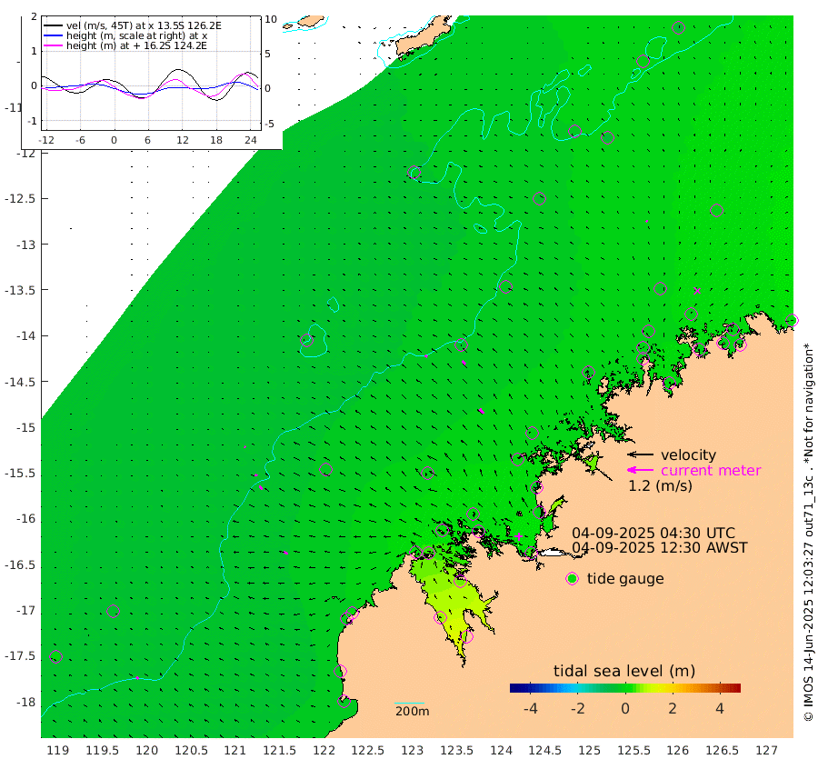12cm/s -64T +10cm/s rms + 1cm/s 1T. NWSBRW 205m 13cm/s -47T +11cm/s rms + 6cm/s -110T. NWSROW 199m 27cm/s -43T +5cm/s rms + 2cm/s 65T. CAM050 58m 22cm/s -46T +12cm/s rms + 5cm/s 92T. CAM100 99m 6cm/s -66T +7cm/s rms + 1cm/s -85T. KIM400 396m 11cm/s -56T +9cm/s rms + 5cm/s -119T. KIM200 208m 20cm/s -50T +11cm/s rms + 5cm/s -147T. KIM100 99m 20cm/s -64T +8cm/s rms + 3cm/s -103T. KIM050 59m 8cm/s -40T +4cm/s rms + 2cm/s 23T. TIMORS88 91m 10cm Imperieuse Reef -32cm Mermaid Reef -18cm Broome -11cm Cape Baskerville 13cm Red Bluff -3cm Cape Boileau -31cm Scott Reef (WA) -24cm Ashmore Reef 27cm Karrakatta Bay 35cm Sunday Island 73cm Valentine Island 73cm Derby 55cm Port Usborne 27cm Bedford Islands 19cm Yampi Sound (Koolan Island) 1cm Macleay Island -10cm Adele Island -33cm Browse Island 31cm Shale Island 0cm Lizard Island -31cm Hall Point 15cm Degerando Island -4cm White Island -32cm Skua No. 4 Well -52cm Jabiru -17cm Maret Island -9cm Baudin Island -12cm Cape Voltaire (Krait Bay) -14cm Dillon Shoal -55cm Laminaria 15cm Port Warrender -8cm Troughton Island -14cm Cassini Island -16cm West Holothuria Reef Offshore -3cm Jar Island -20cm Lynher Bank -27cm Heywood Shoal -24cm Pee Shoal -6cm Van Cloon Shoal -6cm Carronade Island -9cm Guy Point -7cm Napier Broome Bay 1cm Lesueur Island