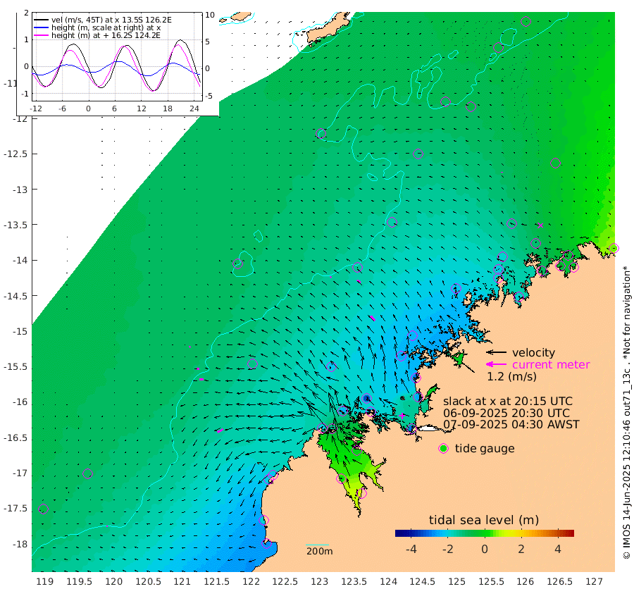 5cm/s -122T +10cm/s rms + 1cm/s 1T. NWSBRW 205m 8cm/s -83T +11cm/s rms + 6cm/s -110T. NWSROW 199m 36cm/s -45T +5cm/s rms + 2cm/s 65T. CAM050 58m 24cm/s -57T +12cm/s rms + 5cm/s 92T. CAM100 99m 6cm/s -103T +7cm/s rms + 1cm/s -85T. KIM400 396m 13cm/s -94T +9cm/s rms + 5cm/s -119T. KIM200 208m 22cm/s -91T +11cm/s rms + 5cm/s -147T. KIM100 99m 35cm/s -118T +8cm/s rms + 3cm/s -103T. KIM050 59m 2cm/s -168T +4cm/s rms + 2cm/s 23T. TIMORS88 91m -63cm Imperieuse Reef -102cm Mermaid Reef -271cm Broome -205cm Cape Baskerville -222cm Red Bluff -192cm Cape Boileau -95cm Scott Reef (WA) -109cm Ashmore Reef -198cm Karrakatta Bay -146cm Sunday Island 18cm Valentine Island 121cm Derby -4cm Port Usborne -227cm Bedford Islands -265cm Yampi Sound (Koolan Island) -331cm Macleay Island -221cm Adele Island -148cm Browse Island -298cm Shale Island -244cm Lizard Island -292cm Hall Point -250cm Degerando Island -236cm White Island -122cm Skua No. 4 Well -73cm Jabiru -220cm Maret Island -200cm Baudin Island -186cm Cape Voltaire (Krait Bay) -73cm Dillon Shoal -55cm Laminaria -192cm Port Warrender -115cm Troughton Island -188cm Cassini Island -127cm West Holothuria Reef Offshore -101cm Jar Island -134cm Lynher Bank -160cm Heywood Shoal -94cm Pee Shoal -46cm Van Cloon Shoal -47cm Carronade Island -48cm Guy Point -42cm Napier Broome Bay 58cm Lesueur Island