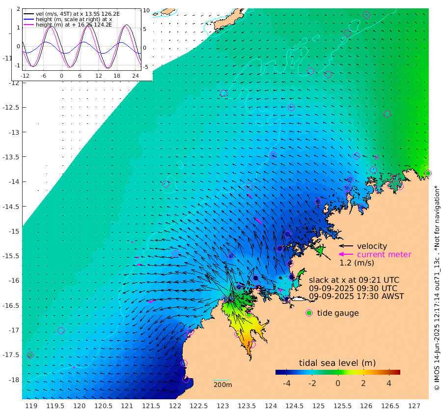 9cm/s -97T +10cm/s rms + 1cm/s 1T. NWSBRW 205m 14cm/s -92T +11cm/s rms + 6cm/s -110T. NWSROW 199m 59cm/s -47T +5cm/s rms + 2cm/s 65T. CAM050 58m 41cm/s -58T +12cm/s rms + 5cm/s 92T. CAM100 99m 11cm/s -99T +7cm/s rms + 1cm/s -85T. KIM400 396m 21cm/s -92T +9cm/s rms + 5cm/s -119T. KIM200 208m 34cm/s -90T +11cm/s rms + 5cm/s -147T. KIM100 99m 60cm/s -115T +8cm/s rms + 3cm/s -103T. KIM050 59m 3cm/s -124T +4cm/s rms + 2cm/s 23T. TIMORS88 91m -109cm Imperieuse Reef -182cm Mermaid Reef -431cm Broome -314cm Cape Baskerville -335cm Red Bluff -313cm Cape Boileau -169cm Scott Reef (WA) -183cm Ashmore Reef -275cm Karrakatta Bay -225cm Sunday Island 111cm Valentine Island 241cm Derby 35cm Port Usborne -348cm Bedford Islands -408cm Yampi Sound (Koolan Island) -457cm Macleay Island -333cm Adele Island -235cm Browse Island -441cm Shale Island -435cm Lizard Island -381cm Hall Point -397cm Degerando Island -378cm White Island -201cm Skua No. 4 Well -142cm Jabiru -348cm Maret Island -307cm Baudin Island -315cm Cape Voltaire (Krait Bay) -119cm Dillon Shoal -120cm Laminaria -321cm Port Warrender -195cm Troughton Island -302cm Cassini Island -214cm West Holothuria Reef Offshore -187cm Jar Island -242cm Lynher Bank -274cm Heywood Shoal -163cm Pee Shoal -109cm Van Cloon Shoal -122cm Carronade Island -120cm Guy Point -135cm Napier Broome Bay 18cm Lesueur Island