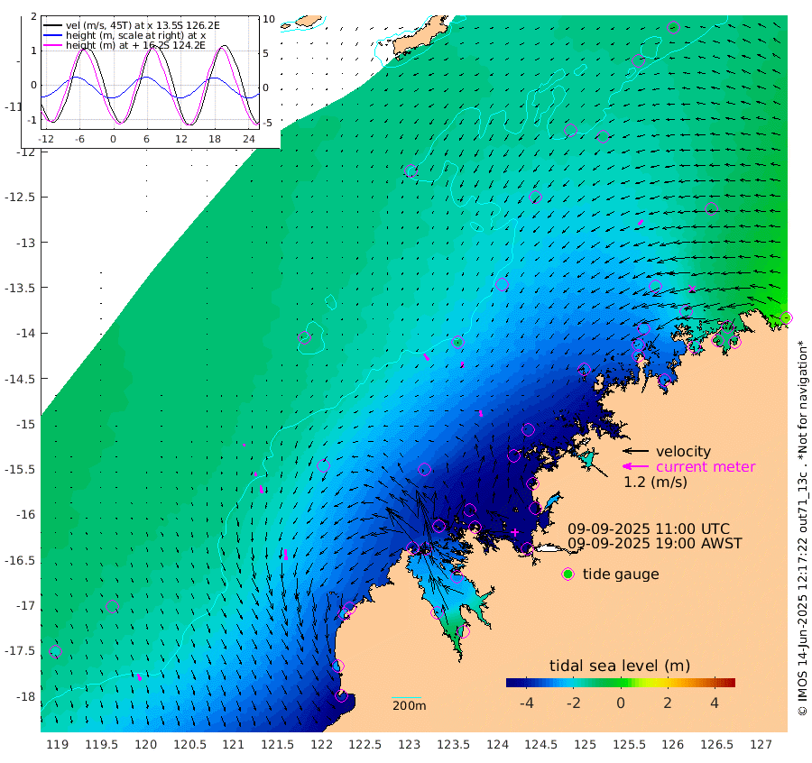 33cm/s 144T +10cm/s rms + 1cm/s 1T. NWSBRW 205m 32cm/s 159T +11cm/s rms + 6cm/s -110T. NWSROW 199m 31cm/s 169T +5cm/s rms + 2cm/s 65T. CAM050 58m 30cm/s 173T +12cm/s rms + 5cm/s 92T. CAM100 99m 9cm/s -177T +7cm/s rms + 1cm/s -85T. KIM400 396m 16cm/s 171T +9cm/s rms + 5cm/s -119T. KIM200 208m 36cm/s 171T +11cm/s rms + 5cm/s -147T. KIM100 99m 49cm/s 178T +8cm/s rms + 3cm/s -103T. KIM050 59m 28cm/s -136T +4cm/s rms + 2cm/s 23T. TIMORS88 91m -175cm Imperieuse Reef -127cm Mermaid Reef -362cm Broome -253cm Cape Baskerville -348cm Red Bluff -260cm Cape Boileau -117cm Scott Reef (WA) -162cm Ashmore Reef -400cm Karrakatta Bay -374cm Sunday Island -244cm Valentine Island -152cm Derby -276cm Port Usborne -418cm Bedford Islands -488cm Yampi Sound (Koolan Island) -505cm Macleay Island -325cm Adele Island -110cm Browse Island -597cm Shale Island -581cm Lizard Island -421cm Hall Point -412cm Degerando Island -362cm White Island -164cm Skua No. 4 Well -126cm Jabiru -296cm Maret Island -260cm Baudin Island -267cm Cape Voltaire (Krait Bay) -128cm Dillon Shoal -72cm Laminaria -297cm Port Warrender -172cm Troughton Island -252cm Cassini Island -174cm West Holothuria Reef Offshore -170cm Jar Island -206cm Lynher Bank -222cm Heywood Shoal -148cm Pee Shoal -103cm Van Cloon Shoal -84cm Carronade Island -76cm Guy Point -95cm Napier Broome Bay 48cm Lesueur Island