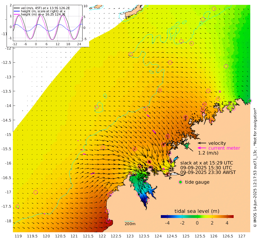 9cm/s 66T +10cm/s rms + 1cm/s 1T. NWSBRW 205m 18cm/s 100T +11cm/s rms + 6cm/s -110T. NWSROW 199m 65cm/s 137T +5cm/s rms + 2cm/s 65T. CAM050 58m 44cm/s 127T +12cm/s rms + 5cm/s 92T. CAM100 99m 12cm/s 86T +7cm/s rms + 1cm/s -85T. KIM400 396m 25cm/s 95T +9cm/s rms + 5cm/s -119T. KIM200 208m 41cm/s 97T +11cm/s rms + 5cm/s -147T. KIM100 99m 59cm/s 69T +8cm/s rms + 3cm/s -103T. KIM050 59m 3cm/s 113T +4cm/s rms + 2cm/s 23T. TIMORS88 91m 102cm Imperieuse Reef 186cm Mermaid Reef 435cm Broome 326cm Cape Baskerville 323cm Red Bluff 307cm Cape Boileau 172cm Scott Reef (WA) 184cm Ashmore Reef 263cm Karrakatta Bay 202cm Sunday Island -122cm Valentine Island -270cm Derby -58cm Port Usborne 345cm Bedford Islands 399cm Yampi Sound (Koolan Island) 452cm Macleay Island 330cm Adele Island 247cm Browse Island 426cm Shale Island 395cm Lizard Island 374cm Hall Point 392cm Degerando Island 377cm White Island 204cm Skua No. 4 Well 145cm Jabiru 353cm Maret Island 320cm Baudin Island 318cm Cape Voltaire (Krait Bay) 116cm Dillon Shoal 124cm Laminaria 324cm Port Warrender 207cm Troughton Island 309cm Cassini Island 218cm West Holothuria Reef Offshore 191cm Jar Island 242cm Lynher Bank 274cm Heywood Shoal 162cm Pee Shoal 105cm Van Cloon Shoal 125cm Carronade Island 126cm Guy Point 124cm Napier Broome Bay -4cm Lesueur Island