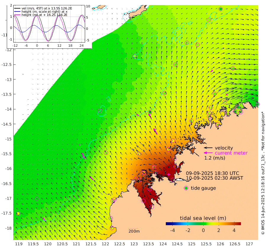 42cm/s -50T +10cm/s rms + 1cm/s 1T. NWSBRW 205m 54cm/s -36T +11cm/s rms + 6cm/s -110T. NWSROW 199m 100cm/s -31T +5cm/s rms + 2cm/s 65T. CAM050 58m 75cm/s -30T +12cm/s rms + 5cm/s 92T. CAM100 99m 16cm/s -43T +7cm/s rms + 1cm/s -85T. KIM400 396m 34cm/s -44T +9cm/s rms + 5cm/s -119T. KIM200 208m 66cm/s -38T +11cm/s rms + 5cm/s -147T. KIM100 99m 73cm/s -47T +8cm/s rms + 3cm/s -103T. KIM050 59m 39cm/s 44T +4cm/s rms + 2cm/s 23T. TIMORS88 91m 152cm Imperieuse Reef 12cm Mermaid Reef 116cm Broome 71cm Cape Baskerville 174cm Red Bluff 69cm Cape Boileau 8cm Scott Reef (WA) 64cm Ashmore Reef 321cm Karrakatta Bay 327cm Sunday Island 475cm Valentine Island 461cm Derby 445cm Port Usborne 284cm Bedford Islands 323cm Yampi Sound (Koolan Island) 305cm Macleay Island 159cm Adele Island -58cm Browse Island 450cm Shale Island 420cm Lizard Island 273cm Hall Point 221cm Degerando Island 168cm White Island 49cm Skua No. 4 Well 68cm Jabiru 101cm Maret Island 96cm Baudin Island 88cm Cape Voltaire (Krait Bay) 69cm Dillon Shoal -8cm Laminaria 127cm Port Warrender 77cm Troughton Island 84cm Cassini Island 53cm West Holothuria Reef Offshore 76cm Jar Island 71cm Lynher Bank 50cm Heywood Shoal 61cm Pee Shoal 48cm Van Cloon Shoal 8cm Carronade Island -4cm Guy Point 6cm Napier Broome Bay -31cm Lesueur Island