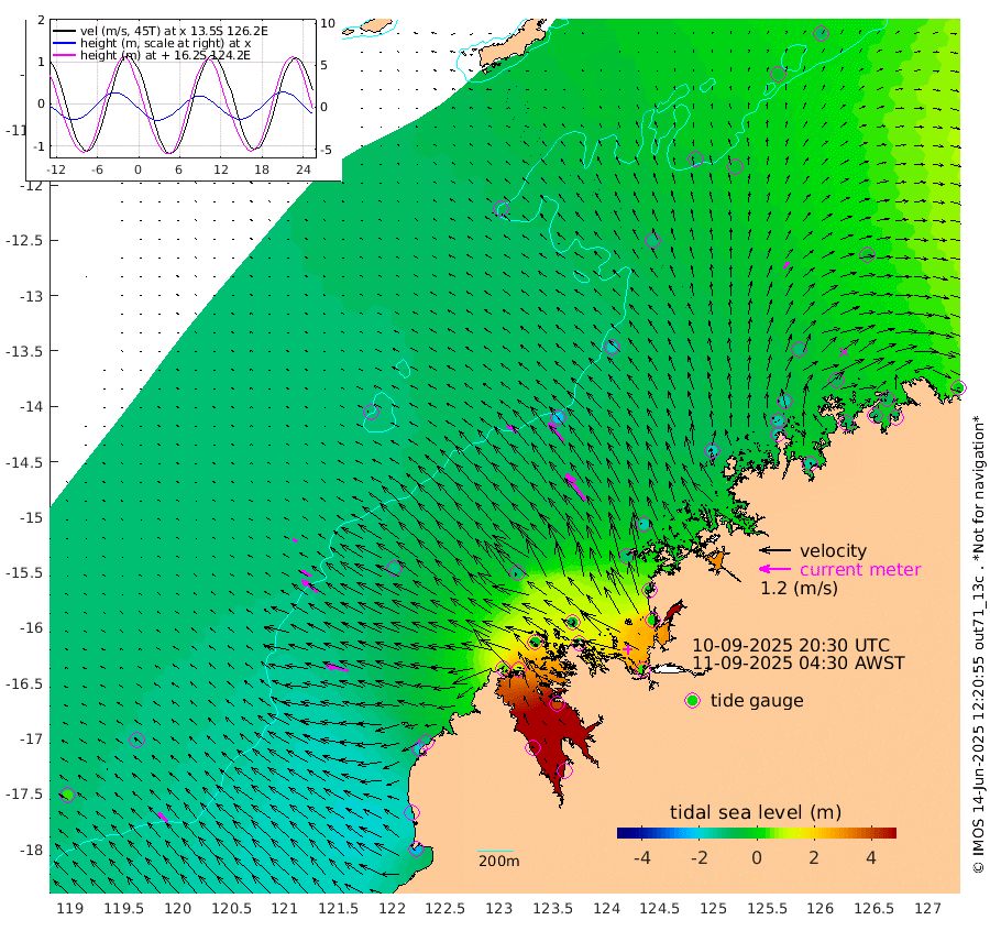 45cm/s -56T +10cm/s rms + 1cm/s 1T. NWSBRW 205m 50cm/s -47T +11cm/s rms + 6cm/s -110T. NWSROW 199m 125cm/s -36T +5cm/s rms + 2cm/s 65T. CAM050 58m 89cm/s -39T +12cm/s rms + 5cm/s 92T. CAM100 99m 18cm/s -65T +7cm/s rms + 1cm/s -85T. KIM400 396m 41cm/s -61T +9cm/s rms + 5cm/s -119T. KIM200 208m 75cm/s -53T +11cm/s rms + 5cm/s -147T. KIM100 99m 87cm/s -77T +8cm/s rms + 3cm/s -103T. KIM050 59m 29cm/s 35T +4cm/s rms + 2cm/s 23T. TIMORS88 91m 44cm Imperieuse Reef -127cm Mermaid Reef -231cm Broome -183cm Cape Baskerville -118cm Red Bluff -178cm Cape Boileau -119cm Scott Reef (WA) -81cm Ashmore Reef 57cm Karrakatta Bay 99cm Sunday Island 475cm Valentine Island 570cm Derby 400cm Port Usborne -34cm Bedford Islands -46cm Yampi Sound (Koolan Island) -83cm Macleay Island -115cm Adele Island -215cm Browse Island 33cm Shale Island 29cm Lizard Island -45cm Hall Point -119cm Degerando Island -150cm White Island -106cm Skua No. 4 Well -35cm Jabiru -176cm Maret Island -155cm Baudin Island -164cm Cape Voltaire (Krait Bay) -31cm Dillon Shoal -95cm Laminaria -142cm Port Warrender -79cm Troughton Island -154cm Cassini Island -114cm West Holothuria Reef Offshore -76cm Jar Island -123cm Lynher Bank -172cm Heywood Shoal -66cm Pee Shoal -36cm Van Cloon Shoal -82cm Carronade Island -94cm Guy Point -85cm Napier Broome Bay -6cm Lesueur Island