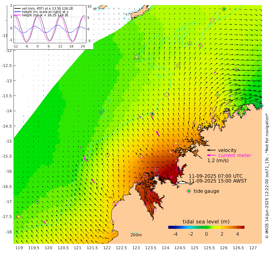 39cm/s -46T +10cm/s rms + 1cm/s 1T. NWSBRW 205m 51cm/s -34T +11cm/s rms + 6cm/s -110T. NWSROW 199m 89cm/s -31T +5cm/s rms + 2cm/s 65T. CAM050 58m 69cm/s -29T +12cm/s rms + 5cm/s 92T. CAM100 99m 14cm/s -36T +7cm/s rms + 1cm/s -85T. KIM400 396m 31cm/s -41T +9cm/s rms + 5cm/s -119T. KIM200 208m 59cm/s -37T +11cm/s rms + 5cm/s -147T. KIM100 99m 68cm/s -40T +8cm/s rms + 3cm/s -103T. KIM050 59m 38cm/s 49T +4cm/s rms + 2cm/s 23T. TIMORS88 91m 156cm Imperieuse Reef 33cm Mermaid Reef 163cm Broome 100cm Cape Baskerville 209cm Red Bluff 108cm Cape Boileau 30cm Scott Reef (WA) 76cm Ashmore Reef 347cm Karrakatta Bay 348cm Sunday Island 435cm Valentine Island 411cm Derby 426cm Port Usborne 315cm Bedford Islands 360cm Yampi Sound (Koolan Island) 349cm Macleay Island 186cm Adele Island -42cm Browse Island 495cm Shale Island 476cm Lizard Island 258cm Hall Point 254cm Degerando Island 200cm White Island 70cm Skua No. 4 Well 52cm Jabiru 129cm Maret Island 109cm Baudin Island 112cm Cape Voltaire (Krait Bay) 79cm Dillon Shoal 11cm Laminaria 138cm Port Warrender 64cm Troughton Island 95cm Cassini Island 56cm West Holothuria Reef Offshore 67cm Jar Island 95cm Lynher Bank 93cm Heywood Shoal 69cm Pee Shoal 34cm Van Cloon Shoal -9cm Carronade Island -13cm Guy Point -9cm Napier Broome Bay -95cm Lesueur Island