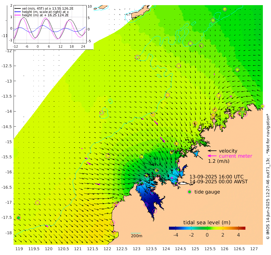 31cm/s 119T +10cm/s rms + 1cm/s 1T. NWSBRW 205m 39cm/s 134T +11cm/s rms + 6cm/s -110T. NWSROW 199m 96cm/s 140T +5cm/s rms + 2cm/s 65T. CAM050 58m 69cm/s 136T +12cm/s rms + 5cm/s 92T. CAM100 99m 13cm/s 113T +7cm/s rms + 1cm/s -85T. KIM400 396m 32cm/s 116T +9cm/s rms + 5cm/s -119T. KIM200 208m 58cm/s 122T +11cm/s rms + 5cm/s -147T. KIM100 99m 67cm/s 100T +8cm/s rms + 3cm/s -103T. KIM050 59m 18cm/s -155T +4cm/s rms + 2cm/s 23T. TIMORS88 91m -2cm Imperieuse Reef 129cm Mermaid Reef 225cm Broome 182cm Cape Baskerville 139cm Red Bluff 177cm Cape Boileau 116cm Scott Reef (WA) 100cm Ashmore Reef -10cm Karrakatta Bay -36cm Sunday Island -351cm Valentine Island -433cm Derby -297cm Port Usborne 67cm Bedford Islands 94cm Yampi Sound (Koolan Island) 87cm Macleay Island 124cm Adele Island 183cm Browse Island 31cm Shale Island 33cm Lizard Island 95cm Hall Point 148cm Degerando Island 175cm White Island 112cm Skua No. 4 Well 74cm Jabiru 183cm Maret Island 175cm Baudin Island 186cm Cape Voltaire (Krait Bay) 64cm Dillon Shoal 104cm Laminaria 189cm Port Warrender 129cm Troughton Island 176cm Cassini Island 145cm West Holothuria Reef Offshore 129cm Jar Island 134cm Lynher Bank 180cm Heywood Shoal 89cm Pee Shoal 87cm Van Cloon Shoal 137cm Carronade Island 146cm Guy Point 141cm Napier Broome Bay 101cm Lesueur Island