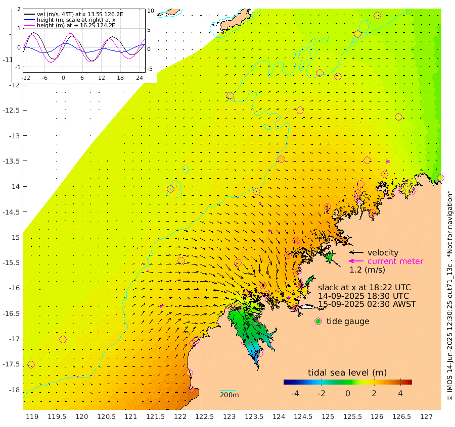 7cm/s 9T +10cm/s rms + 1cm/s 1T. NWSBRW 205m 9cm/s 62T +11cm/s rms + 6cm/s -110T. NWSROW 199m 26cm/s 128T +5cm/s rms + 2cm/s 65T. CAM050 58m 20cm/s 106T +12cm/s rms + 5cm/s 92T. CAM100 99m 7cm/s 69T +7cm/s rms + 1cm/s -85T. KIM400 396m 13cm/s 86T +9cm/s rms + 5cm/s -119T. KIM200 208m 21cm/s 82T +11cm/s rms + 5cm/s -147T. KIM100 99m 36cm/s 51T +8cm/s rms + 3cm/s -103T. KIM050 59m 4cm/s 33T +4cm/s rms + 2cm/s 23T. TIMORS88 91m 107cm Imperieuse Reef 143cm Mermaid Reef 301cm Broome 221cm Cape Baskerville 223cm Red Bluff 224cm Cape Boileau 130cm Scott Reef (WA) 143cm Ashmore Reef 203cm Karrakatta Bay 188cm Sunday Island -20cm Valentine Island -102cm Derby 25cm Port Usborne 253cm Bedford Islands 314cm Yampi Sound (Koolan Island) 295cm Macleay Island 224cm Adele Island 149cm Browse Island 343cm Shale Island 364cm Lizard Island 259cm Hall Point 292cm Degerando Island 294cm White Island 148cm Skua No. 4 Well 130cm Jabiru 248cm Maret Island 233cm Baudin Island 246cm Cape Voltaire (Krait Bay) 110cm Dillon Shoal 107cm Laminaria 271cm Port Warrender 182cm Troughton Island 221cm Cassini Island 177cm West Holothuria Reef Offshore 184cm Jar Island 193cm Lynher Bank 216cm Heywood Shoal 128cm Pee Shoal 120cm Van Cloon Shoal 149cm Carronade Island 155cm Guy Point 155cm Napier Broome Bay 92cm Lesueur Island