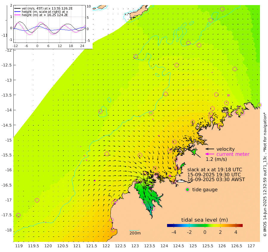 6cm/s -4T +10cm/s rms + 1cm/s 1T. NWSBRW 205m 6cm/s 38T +11cm/s rms + 6cm/s -110T. NWSROW 199m 11cm/s 117T +5cm/s rms + 2cm/s 65T. CAM050 58m 11cm/s 87T +12cm/s rms + 5cm/s 92T. CAM100 99m 4cm/s 62T +7cm/s rms + 1cm/s -85T. KIM400 396m 8cm/s 83T +9cm/s rms + 5cm/s -119T. KIM200 208m 13cm/s 74T +11cm/s rms + 5cm/s -147T. KIM100 99m 23cm/s 42T +8cm/s rms + 3cm/s -103T. KIM050 59m 4cm/s 15T +4cm/s rms + 2cm/s 23T. TIMORS88 91m 86cm Imperieuse Reef 103cm Mermaid Reef 203cm Broome 146cm Cape Baskerville 144cm Red Bluff 153cm Cape Boileau 94cm Scott Reef (WA) 104cm Ashmore Reef 150cm Karrakatta Bay 149cm Sunday Island 19cm Valentine Island -26cm Derby 51cm Port Usborne 175cm Bedford Islands 227cm Yampi Sound (Koolan Island) 204cm Macleay Island 153cm Adele Island 96cm Browse Island 252cm Shale Island 283cm Lizard Island 196cm Hall Point 202cm Degerando Island 210cm White Island 105cm Skua No. 4 Well 110cm Jabiru 169cm Maret Island 162cm Baudin Island 173cm Cape Voltaire (Krait Bay) 88cm Dillon Shoal 85cm Laminaria 193cm Port Warrender 136cm Troughton Island 150cm Cassini Island 129cm West Holothuria Reef Offshore 141cm Jar Island 140cm Lynher Bank 153cm Heywood Shoal 94cm Pee Shoal 97cm Van Cloon Shoal 120cm Carronade Island 126cm Guy Point 126cm Napier Broome Bay 92cm Lesueur Island
