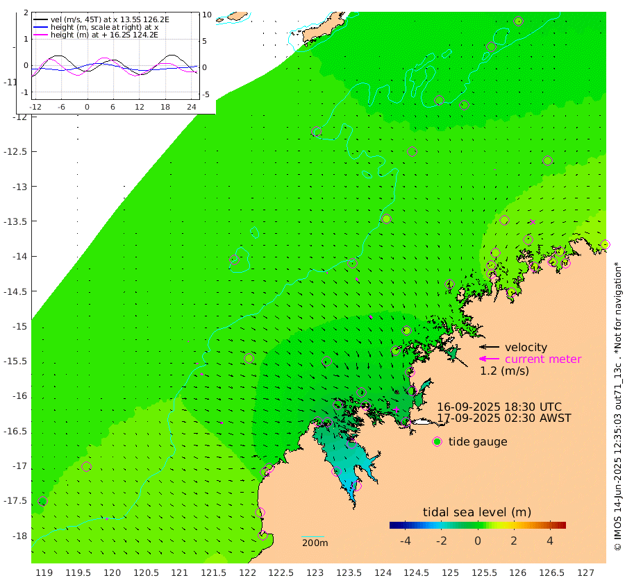 7cm/s 111T +10cm/s rms + 1cm/s 1T. NWSBRW 205m 9cm/s 129T +11cm/s rms + 6cm/s -110T. NWSROW 199m 21cm/s 137T +5cm/s rms + 2cm/s 65T. CAM050 58m 17cm/s 129T +12cm/s rms + 5cm/s 92T. CAM100 99m 3cm/s 107T +7cm/s rms + 1cm/s -85T. KIM400 396m 8cm/s 120T +9cm/s rms + 5cm/s -119T. KIM200 208m 15cm/s 126T +11cm/s rms + 5cm/s -147T. KIM100 99m 16cm/s 93T +8cm/s rms + 3cm/s -103T. KIM050 59m 5cm/s -180T +4cm/s rms + 2cm/s 23T. TIMORS88 91m 13cm Imperieuse Reef 49cm Mermaid Reef 72cm Broome 56cm Cape Baskerville 58cm Red Bluff 62cm Cape Boileau 38cm Scott Reef (WA) 40cm Ashmore Reef 2cm Karrakatta Bay 5cm Sunday Island -118cm Valentine Island -131cm Derby -96cm Port Usborne 15cm Bedford Islands 44cm Yampi Sound (Koolan Island) -11cm Macleay Island 28cm Adele Island 42cm Browse Island 26cm Shale Island 40cm Lizard Island 46cm Hall Point 53cm Degerando Island 74cm White Island 33cm Skua No. 4 Well 41cm Jabiru 57cm Maret Island 69cm Baudin Island 73cm Cape Voltaire (Krait Bay) 34cm Dillon Shoal 47cm Laminaria 83cm Port Warrender 59cm Troughton Island 61cm Cassini Island 63cm West Holothuria Reef Offshore 76cm Jar Island 53cm Lynher Bank 72cm Heywood Shoal 31cm Pee Shoal 58cm Van Cloon Shoal 85cm Carronade Island 88cm Guy Point 91cm Napier Broome Bay 98cm Lesueur Island