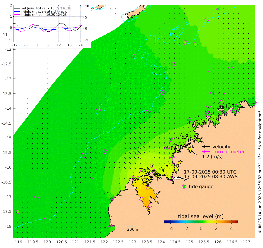 11cm/s -45T +10cm/s rms + 1cm/s 1T. NWSBRW 205m 11cm/s -35T +11cm/s rms + 6cm/s -110T. NWSROW 199m 20cm/s -30T +5cm/s rms + 2cm/s 65T. CAM050 58m 16cm/s -34T +12cm/s rms + 5cm/s 92T. CAM100 99m 4cm/s -46T +7cm/s rms + 1cm/s -85T. KIM400 396m 8cm/s -48T +9cm/s rms + 5cm/s -119T. KIM200 208m 15cm/s -37T +11cm/s rms + 5cm/s -147T. KIM100 99m 14cm/s -53T +8cm/s rms + 3cm/s -103T. KIM050 59m 11cm/s 6T +4cm/s rms + 2cm/s 23T. TIMORS88 91m 45cm Imperieuse Reef 5cm Mermaid Reef 5cm Broome 8cm Cape Baskerville -3cm Red Bluff 18cm Cape Boileau 18cm Scott Reef (WA) 28cm Ashmore Reef 67cm Karrakatta Bay 72cm Sunday Island 166cm Valentine Island 179cm Derby 151cm Port Usborne 52cm Bedford Islands 43cm Yampi Sound (Koolan Island) 97cm Macleay Island 46cm Adele Island 5cm Browse Island 65cm Shale Island 63cm Lizard Island 33cm Hall Point 33cm Degerando Island 10cm White Island 39cm Skua No. 4 Well 49cm Jabiru 25cm Maret Island 9cm Baudin Island 21cm Cape Voltaire (Krait Bay) 48cm Dillon Shoal 14cm Laminaria 23cm Port Warrender 47cm Troughton Island 31cm Cassini Island 25cm West Holothuria Reef Offshore 22cm Jar Island 13cm Lynher Bank 16cm Heywood Shoal 47cm Pee Shoal 34cm Van Cloon Shoal 19cm Carronade Island 22cm Guy Point 26cm Napier Broome Bay 19cm Lesueur Island
