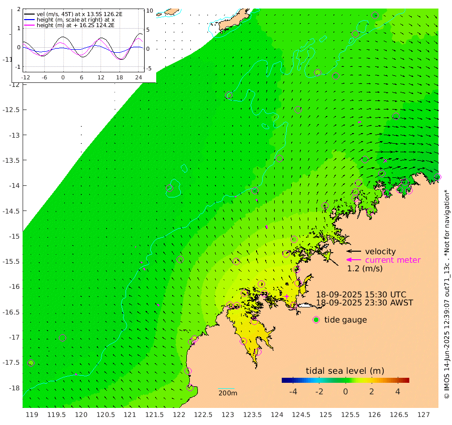 12cm/s -48T +10cm/s rms + 1cm/s 1T. NWSBRW 205m 18cm/s -33T +11cm/s rms + 6cm/s -110T. NWSROW 199m 27cm/s -19T +5cm/s rms + 2cm/s 65T. CAM050 58m 20cm/s -20T +12cm/s rms + 5cm/s 92T. CAM100 99m 5cm/s -36T +7cm/s rms + 1cm/s -85T. KIM400 396m 12cm/s -39T +9cm/s rms + 5cm/s -119T. KIM200 208m 21cm/s -32T +11cm/s rms + 5cm/s -147T. KIM100 99m 20cm/s -33T +8cm/s rms + 3cm/s -103T. KIM050 59m 25cm/s 72T +4cm/s rms + 2cm/s 23T. TIMORS88 91m 57cm Imperieuse Reef 15cm Mermaid Reef 65cm Broome 53cm Cape Baskerville 104cm Red Bluff 48cm Cape Boileau 17cm Scott Reef (WA) 38cm Ashmore Reef 126cm Karrakatta Bay 124cm Sunday Island 152cm Valentine Island 131cm Derby 135cm Port Usborne 135cm Bedford Islands 121cm Yampi Sound (Koolan Island) 125cm Macleay Island 81cm Adele Island -12cm Browse Island 156cm Shale Island 129cm Lizard Island 72cm Hall Point 101cm Degerando Island 59cm White Island 39cm Skua No. 4 Well 30cm Jabiru 59cm Maret Island 46cm Baudin Island 46cm Cape Voltaire (Krait Bay) 34cm Dillon Shoal 14cm Laminaria 54cm Port Warrender 33cm Troughton Island 56cm Cassini Island 29cm West Holothuria Reef Offshore 21cm Jar Island 37cm Lynher Bank 40cm Heywood Shoal 46cm Pee Shoal 24cm Van Cloon Shoal -5cm Carronade Island -10cm Guy Point -3cm Napier Broome Bay -34cm Lesueur Island