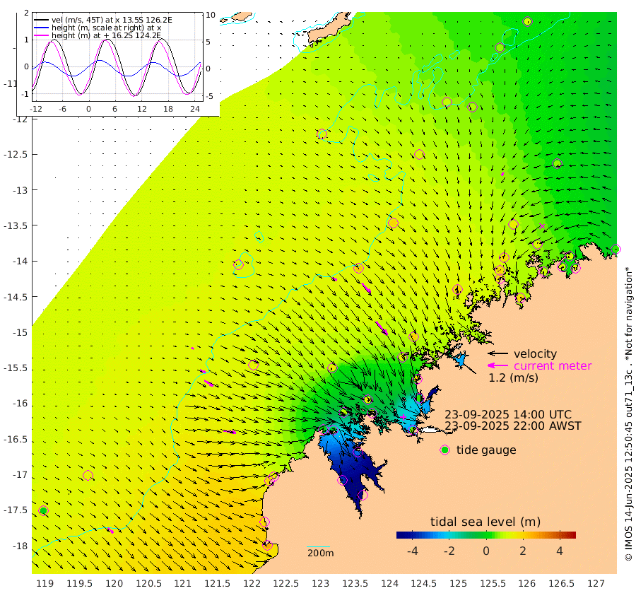 31cm/s 121T +10cm/s rms + 1cm/s 1T. NWSBRW 205m 43cm/s 133T +11cm/s rms + 6cm/s -110T. NWSROW 199m 107cm/s 141T +5cm/s rms + 2cm/s 65T. CAM050 58m 76cm/s 137T +12cm/s rms + 5cm/s 92T. CAM100 99m 16cm/s 111T +7cm/s rms + 1cm/s -85T. KIM400 396m 36cm/s 116T +9cm/s rms + 5cm/s -119T. KIM200 208m 63cm/s 121T +11cm/s rms + 5cm/s -147T. KIM100 99m 73cm/s 100T +8cm/s rms + 3cm/s -103T. KIM050 59m 21cm/s -149T +4cm/s rms + 2cm/s 23T. TIMORS88 91m -12cm Imperieuse Reef 137cm Mermaid Reef 256cm Broome 200cm Cape Baskerville 150cm Red Bluff 187cm Cape Boileau 125cm Scott Reef (WA) 109cm Ashmore Reef 8cm Karrakatta Bay -35cm Sunday Island -369cm Valentine Island -458cm Derby -302cm Port Usborne 76cm Bedford Islands 115cm Yampi Sound (Koolan Island) 165cm Macleay Island 163cm Adele Island 220cm Browse Island 57cm Shale Island 38cm Lizard Island 182cm Hall Point 163cm Degerando Island 197cm White Island 125cm Skua No. 4 Well 83cm Jabiru 208cm Maret Island 194cm Baudin Island 193cm Cape Voltaire (Krait Bay) 65cm Dillon Shoal 106cm Laminaria 182cm Port Warrender 125cm Troughton Island 192cm Cassini Island 152cm West Holothuria Reef Offshore 117cm Jar Island 140cm Lynher Bank 182cm Heywood Shoal 93cm Pee Shoal 68cm Van Cloon Shoal 111cm Carronade Island 118cm Guy Point 110cm Napier Broome Bay 42cm Lesueur Island