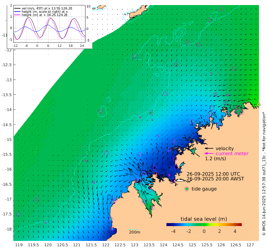 29cm/s 141T +10cm/s rms + 1cm/s 1T. NWSBRW 205m 25cm/s 157T +11cm/s rms + 6cm/s -110T. NWSROW 199m 27cm/s 156T +5cm/s rms + 2cm/s 65T. CAM050 58m 26cm/s 163T +12cm/s rms + 5cm/s 92T. CAM100 99m 7cm/s 175T +7cm/s rms + 1cm/s -85T. KIM400 396m 13cm/s 169T +9cm/s rms + 5cm/s -119T. KIM200 208m 29cm/s 168T +11cm/s rms + 5cm/s -147T. KIM100 99m 40cm/s 171T +8cm/s rms + 3cm/s -103T. KIM050 59m 15cm/s -170T +4cm/s rms + 2cm/s 23T. TIMORS88 91m -125cm Imperieuse Reef -85cm Mermaid Reef -275cm Broome -181cm Cape Baskerville -256cm Red Bluff -189cm Cape Boileau -73cm Scott Reef (WA) -103cm Ashmore Reef -297cm Karrakatta Bay -279cm Sunday Island -184cm Valentine Island -109cm Derby -208cm Port Usborne -306cm Bedford Islands -385cm Yampi Sound (Koolan Island) -383cm Macleay Island -236cm Adele Island -79cm Browse Island -475cm Shale Island -480cm Lizard Island -373cm Hall Point -314cm Degerando Island -294cm White Island -98cm Skua No. 4 Well -78cm Jabiru -215cm Maret Island -193cm Baudin Island -198cm Cape Voltaire (Krait Bay) -74cm Dillon Shoal -25cm Laminaria -235cm Port Warrender -115cm Troughton Island -172cm Cassini Island -120cm West Holothuria Reef Offshore -128cm Jar Island -151cm Lynher Bank -152cm Heywood Shoal -81cm Pee Shoal -60cm Van Cloon Shoal -59cm Carronade Island -52cm Guy Point -62cm Napier Broome Bay 46cm Lesueur Island