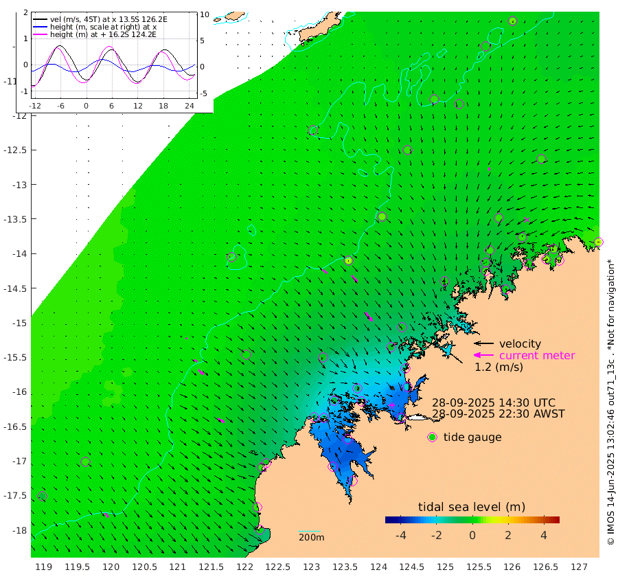 33cm/s 129T +10cm/s rms + 1cm/s 1T. NWSBRW 205m 33cm/s 141T +11cm/s rms + 6cm/s -110T. NWSROW 199m 68cm/s 143T +5cm/s rms + 2cm/s 65T. CAM050 58m 52cm/s 141T +12cm/s rms + 5cm/s 92T. CAM100 99m 9cm/s 128T +7cm/s rms + 1cm/s -85T. KIM400 396m 21cm/s 126T +9cm/s rms + 5cm/s -119T. KIM200 208m 42cm/s 134T +11cm/s rms + 5cm/s -147T. KIM100 99m 49cm/s 117T +8cm/s rms + 3cm/s -103T. KIM050 59m 17cm/s -169T +4cm/s rms + 2cm/s 23T. TIMORS88 91m -48cm Imperieuse Reef 42cm Mermaid Reef 24cm Broome 42cm Cape Baskerville -10cm Red Bluff 35cm Cape Boileau 41cm Scott Reef (WA) 22cm Ashmore Reef -121cm Karrakatta Bay -137cm Sunday Island -277cm Valentine Island -305cm Derby -264cm Port Usborne -73cm Bedford Islands -106cm Yampi Sound (Koolan Island) -106cm Macleay Island -18cm Adele Island 78cm Browse Island -182cm Shale Island -185cm Lizard Island -143cm Hall Point -37cm Degerando Island -25cm White Island 35cm Skua No. 4 Well 9cm Jabiru 28cm Maret Island 27cm Baudin Island 32cm Cape Voltaire (Krait Bay) 8cm Dillon Shoal 53cm Laminaria 15cm Port Warrender 35cm Troughton Island 45cm Cassini Island 38cm West Holothuria Reef Offshore 24cm Jar Island 18cm Lynher Bank 47cm Heywood Shoal 30cm Pee Shoal 32cm Van Cloon Shoal 55cm Carronade Island 61cm Guy Point 59cm Napier Broome Bay 77cm Lesueur Island