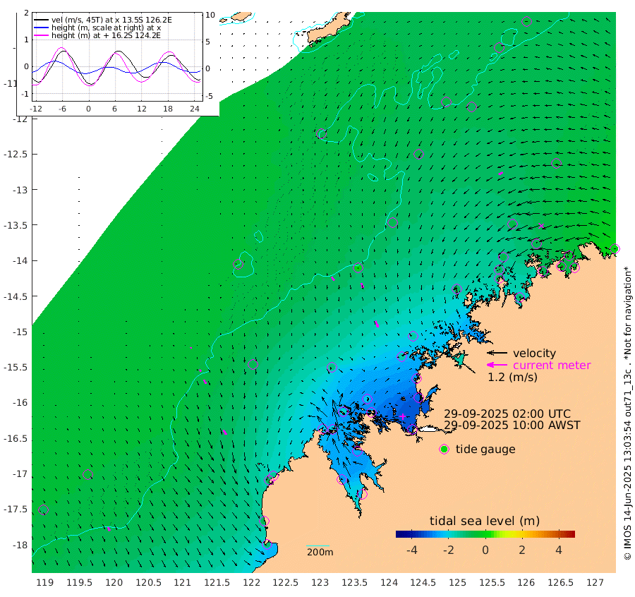25cm/s 142T +10cm/s rms + 1cm/s 1T. NWSBRW 205m 23cm/s 150T +11cm/s rms + 6cm/s -110T. NWSROW 199m 40cm/s 158T +5cm/s rms + 2cm/s 65T. CAM050 58m 31cm/s 163T +12cm/s rms + 5cm/s 92T. CAM100 99m 6cm/s 164T +7cm/s rms + 1cm/s -85T. KIM400 396m 12cm/s 149T +9cm/s rms + 5cm/s -119T. KIM200 208m 26cm/s 154T +11cm/s rms + 5cm/s -147T. KIM100 99m 32cm/s 147T +8cm/s rms + 3cm/s -103T. KIM050 59m 27cm/s -121T +4cm/s rms + 2cm/s 23T. TIMORS88 91m -102cm Imperieuse Reef -51cm Mermaid Reef -119cm Broome -85cm Cape Baskerville -140cm Red Bluff -78cm Cape Boileau -44cm Scott Reef (WA) -75cm Ashmore Reef -211cm Karrakatta Bay -208cm Sunday Island -263cm Valentine Island -230cm Derby -240cm Port Usborne -185cm Bedford Islands -227cm Yampi Sound (Koolan Island) -218cm Macleay Island -130cm Adele Island 1cm Browse Island -303cm Shale Island -309cm Lizard Island -270cm Hall Point -160cm Degerando Island -151cm White Island -69cm Skua No. 4 Well -94cm Jabiru -104cm Maret Island -103cm Baudin Island -93cm Cape Voltaire (Krait Bay) -72cm Dillon Shoal -53cm Laminaria -113cm Port Warrender -80cm Troughton Island -85cm Cassini Island -73cm West Holothuria Reef Offshore -80cm Jar Island -84cm Lynher Bank -83cm Heywood Shoal -71cm Pee Shoal -56cm Van Cloon Shoal -38cm Carronade Island -39cm Guy Point -35cm Napier Broome Bay -5cm Lesueur Island