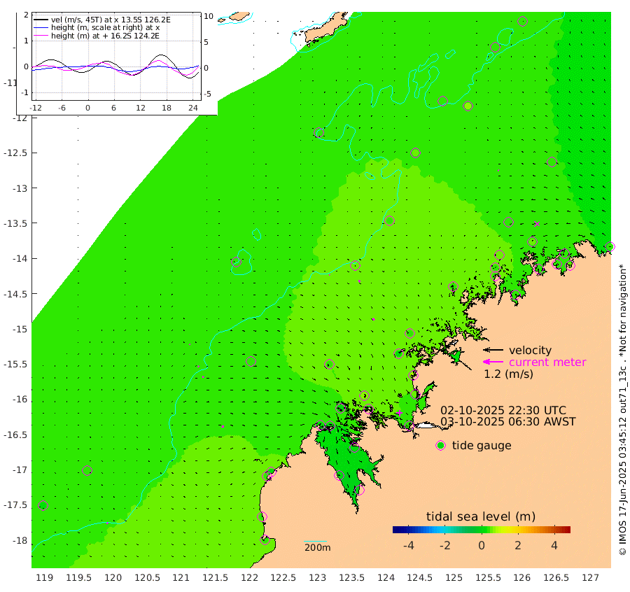 4cm/s 116T +10cm/s rms + 1cm/s 1T. NWSBRW 205m 6cm/s 137T +11cm/s rms + 6cm/s -110T. NWSROW 199m 15cm/s 133T +5cm/s rms + 2cm/s 65T. CAM050 58m 11cm/s 129T +12cm/s rms + 5cm/s 92T. CAM100 99m 3cm/s 103T +7cm/s rms + 1cm/s -85T. KIM400 396m 6cm/s 116T +9cm/s rms + 5cm/s -119T. KIM200 208m 10cm/s 117T +11cm/s rms + 5cm/s -147T. KIM100 99m 12cm/s 99T +8cm/s rms + 3cm/s -103T. KIM050 59m 6cm/s -52T +4cm/s rms + 2cm/s 23T. TIMORS88 91m 20cm Imperieuse Reef 35cm Mermaid Reef 42cm Broome 36cm Cape Baskerville 13cm Red Bluff 40cm Cape Boileau 37cm Scott Reef (WA) 38cm Ashmore Reef 28cm Karrakatta Bay 10cm Sunday Island 12cm Valentine Island -7cm Derby 7cm Port Usborne 10cm Bedford Islands 27cm Yampi Sound (Koolan Island) 62cm Macleay Island 41cm Adele Island 49cm Browse Island 32cm Shale Island 56cm Lizard Island 78cm Hall Point 26cm Degerando Island 37cm White Island 50cm Skua No. 4 Well 65cm Jabiru 45cm Maret Island 41cm Baudin Island 42cm Cape Voltaire (Krait Bay) 39cm Dillon Shoal 43cm Laminaria 34cm Port Warrender 53cm Troughton Island 47cm Cassini Island 45cm West Holothuria Reef Offshore 42cm Jar Island 31cm Lynher Bank 43cm Heywood Shoal 45cm Pee Shoal 38cm Van Cloon Shoal 40cm Carronade Island 44cm Guy Point 49cm Napier Broome Bay 37cm Lesueur Island