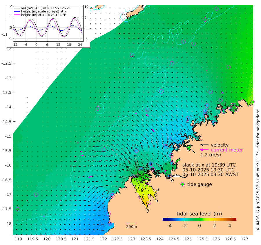 13cm/s -71T +10cm/s rms + 1cm/s 1T. NWSBRW 205m 15cm/s -65T +11cm/s rms + 6cm/s -110T. NWSROW 199m 54cm/s -44T +5cm/s rms + 2cm/s 65T. CAM050 58m 38cm/s -51T +12cm/s rms + 5cm/s 92T. CAM100 99m 9cm/s -91T +7cm/s rms + 1cm/s -85T. KIM400 396m 19cm/s -82T +9cm/s rms + 5cm/s -119T. KIM200 208m 33cm/s -76T +11cm/s rms + 5cm/s -147T. KIM100 99m 46cm/s -105T +8cm/s rms + 3cm/s -103T. KIM050 59m 4cm/s 30T +4cm/s rms + 2cm/s 23T. TIMORS88 91m -57cm Imperieuse Reef -126cm Mermaid Reef -284cm Broome -220cm Cape Baskerville -211cm Red Bluff -203cm Cape Boileau -120cm Scott Reef (WA) -125cm Ashmore Reef -168cm Karrakatta Bay -116cm Sunday Island 83cm Valentine Island 193cm Derby 52cm Port Usborne -214cm Bedford Islands -245cm Yampi Sound (Koolan Island) -316cm Macleay Island -224cm Adele Island -175cm Browse Island -259cm Shale Island -221cm Lizard Island -215cm Hall Point -243cm Degerando Island -237cm White Island -145cm Skua No. 4 Well -79cm Jabiru -235cm Maret Island -210cm Baudin Island -203cm Cape Voltaire (Krait Bay) -84cm Dillon Shoal -90cm Laminaria -199cm Port Warrender -133cm Troughton Island -205cm Cassini Island -144cm West Holothuria Reef Offshore -112cm Jar Island -152cm Lynher Bank -186cm Heywood Shoal -114cm Pee Shoal -59cm Van Cloon Shoal -66cm Carronade Island -72cm Guy Point -62cm Napier Broome Bay 35cm Lesueur Island