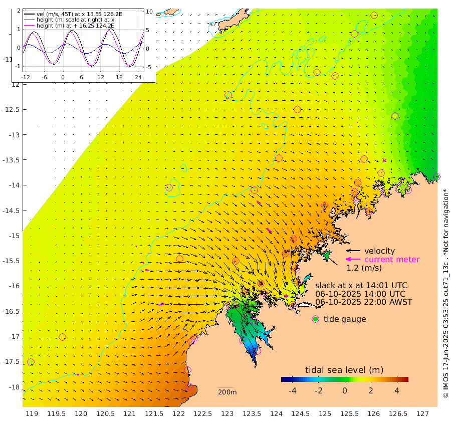 9cm/s 80T +10cm/s rms + 1cm/s 1T. NWSBRW 205m 16cm/s 102T +11cm/s rms + 6cm/s -110T. NWSROW 199m 56cm/s 137T +5cm/s rms + 2cm/s 65T. CAM050 58m 39cm/s 128T +12cm/s rms + 5cm/s 92T. CAM100 99m 11cm/s 87T +7cm/s rms + 1cm/s -85T. KIM400 396m 21cm/s 97T +9cm/s rms + 5cm/s -119T. KIM200 208m 34cm/s 98T +11cm/s rms + 5cm/s -147T. KIM100 99m 49cm/s 71T +8cm/s rms + 3cm/s -103T. KIM050 59m 4cm/s 138T +4cm/s rms + 2cm/s 23T. TIMORS88 91m 82cm Imperieuse Reef 154cm Mermaid Reef 350cm Broome 264cm Cape Baskerville 258cm Red Bluff 248cm Cape Boileau 145cm Scott Reef (WA) 158cm Ashmore Reef 214cm Karrakatta Bay 164cm Sunday Island -87cm Valentine Island -204cm Derby -38cm Port Usborne 277cm Bedford Islands 318cm Yampi Sound (Koolan Island) 384cm Macleay Island 278cm Adele Island 209cm Browse Island 335cm Shale Island 306cm Lizard Island 289cm Hall Point 312cm Degerando Island 301cm White Island 175cm Skua No. 4 Well 121cm Jabiru 291cm Maret Island 261cm Baudin Island 257cm Cape Voltaire (Krait Bay) 103cm Dillon Shoal 109cm Laminaria 257cm Port Warrender 175cm Troughton Island 257cm Cassini Island 184cm West Holothuria Reef Offshore 155cm Jar Island 196cm Lynher Bank 222cm Heywood Shoal 144cm Pee Shoal 91cm Van Cloon Shoal 101cm Carronade Island 101cm Guy Point 100cm Napier Broome Bay -5cm Lesueur Island