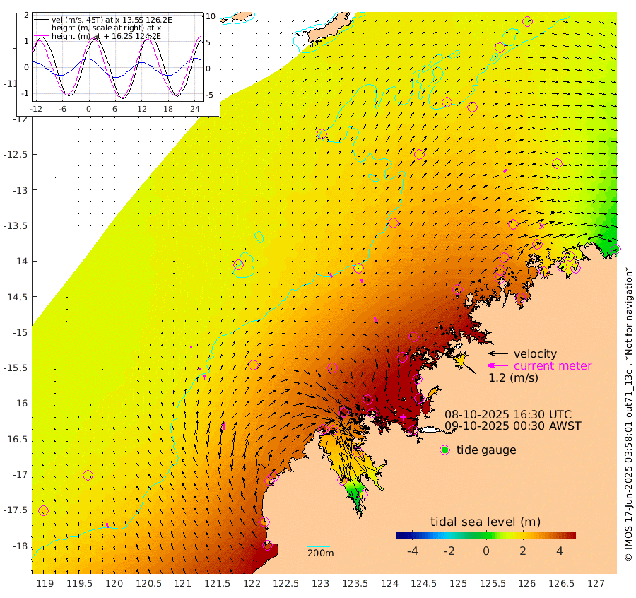 28cm/s -32T +10cm/s rms + 1cm/s 1T. NWSBRW 205m 31cm/s -16T +11cm/s rms + 6cm/s -110T. NWSROW 199m 24cm/s -18T +5cm/s rms + 2cm/s 65T. CAM050 58m 25cm/s -6T +12cm/s rms + 5cm/s 92T. CAM100 99m 9cm/s 6T +7cm/s rms + 1cm/s -85T. KIM400 396m 15cm/s 2T +9cm/s rms + 5cm/s -119T. KIM200 208m 33cm/s 0T +11cm/s rms + 5cm/s -147T. KIM100 99m 51cm/s 2T +8cm/s rms + 3cm/s -103T. KIM050 59m 24cm/s 43T +4cm/s rms + 2cm/s 23T. TIMORS88 91m 192cm Imperieuse Reef 150cm Mermaid Reef 402cm Broome 292cm Cape Baskerville 356cm Red Bluff 286cm Cape Boileau 139cm Scott Reef (WA) 189cm Ashmore Reef 421cm Karrakatta Bay 382cm Sunday Island 264cm Valentine Island 145cm Derby 282cm Port Usborne 452cm Bedford Islands 521cm Yampi Sound (Koolan Island) 546cm Macleay Island 355cm Adele Island 146cm Browse Island 626cm Shale Island 603cm Lizard Island 454cm Hall Point 446cm Degerando Island 399cm White Island 195cm Skua No. 4 Well 166cm Jabiru 339cm Maret Island 307cm Baudin Island 308cm Cape Voltaire (Krait Bay) 146cm Dillon Shoal 91cm Laminaria 345cm Port Warrender 228cm Troughton Island 297cm Cassini Island 210cm West Holothuria Reef Offshore 213cm Jar Island 235cm Lynher Bank 248cm Heywood Shoal 176cm Pee Shoal 132cm Van Cloon Shoal 123cm Carronade Island 118cm Guy Point 125cm Napier Broome Bay 10cm Lesueur Island